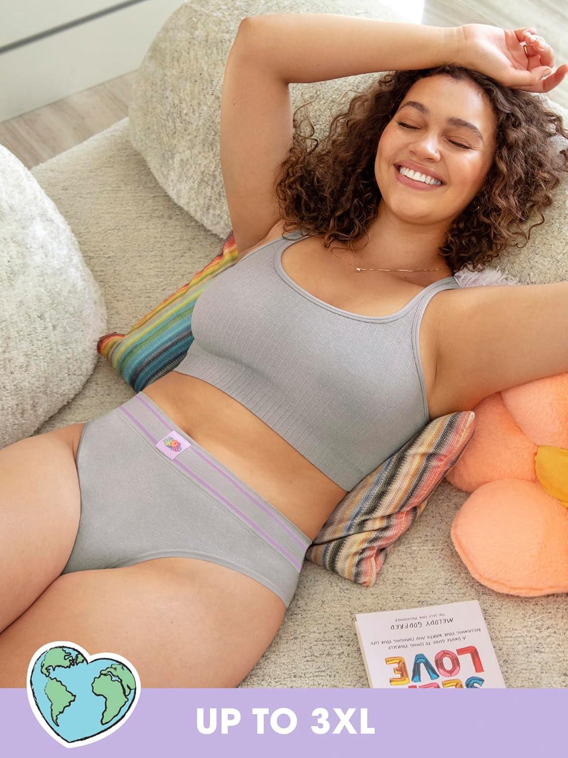 Meet the Riding High Seamless Bikini from A Fresh Collection by Fruit of the Loom – the ultimate blend of fun and comfort for your junior girl's vibrant style! Crafted from recycled material, these bikini undies lay flat under clothes, ensuring a seamless look for any outfit. The wide waistband offers smoothing support, embracing her curves with flair. With a high rise and high leg design, combined with cheeky coverage, these undies are all about that trendy, playful vibe. Plus, they rock the classic Fruit of the Loom branding, adding a touch of coolness that's totally iconic! It's not just undies; it's a style statement. And guess what? It's a three pack, ensuring she's covered for every mood and occasion. Available in sizes XS to 3XL because everybody deserves a touch of Riding High chicness!