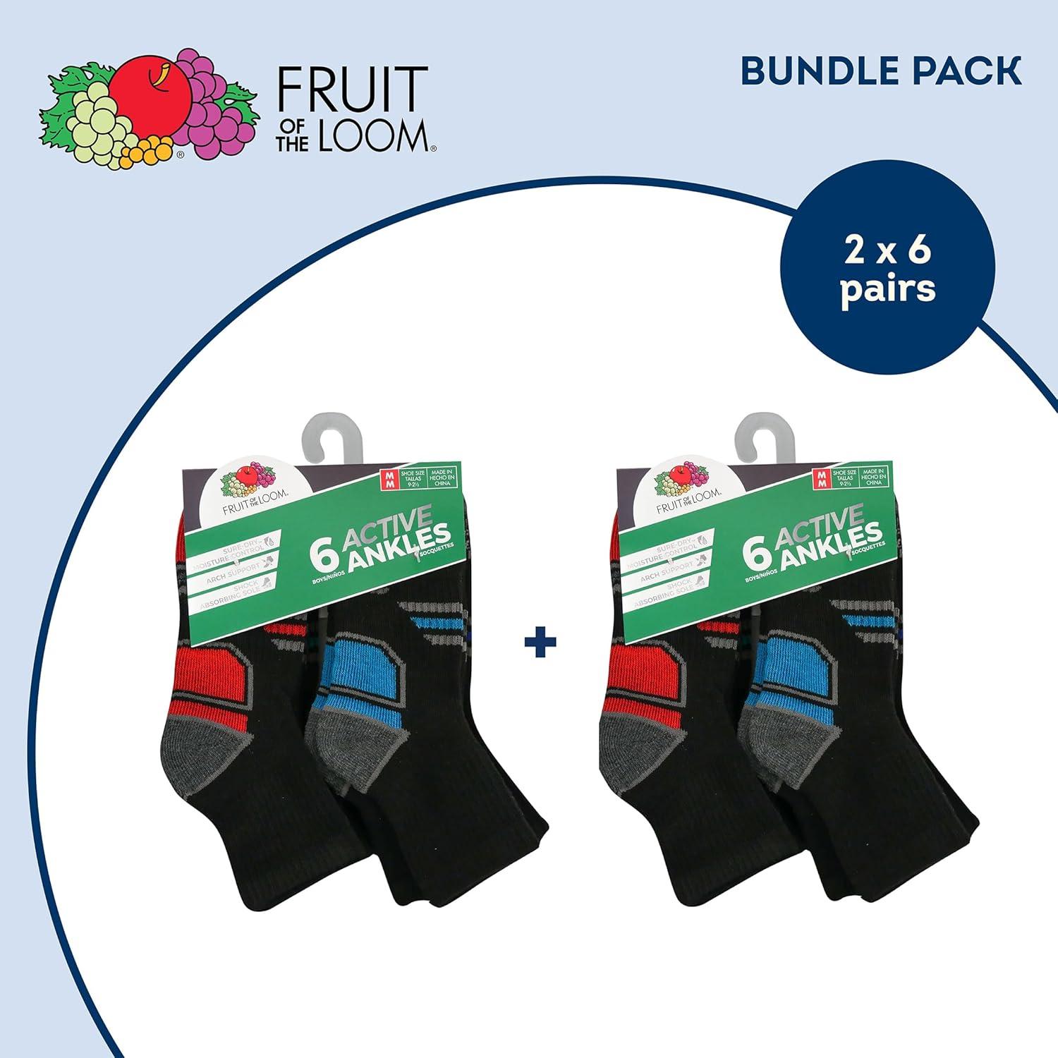 Fruit of the Loom Boys’ Everyday Active Crew Socks (12 Pack)(Black)