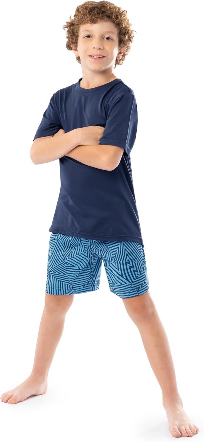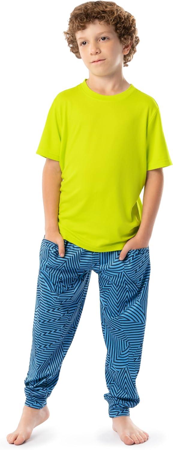Fruit of the Loom Boys’ Getaway Loose Fit 4-Piece Pajama Set(Lime/Geo Zag)