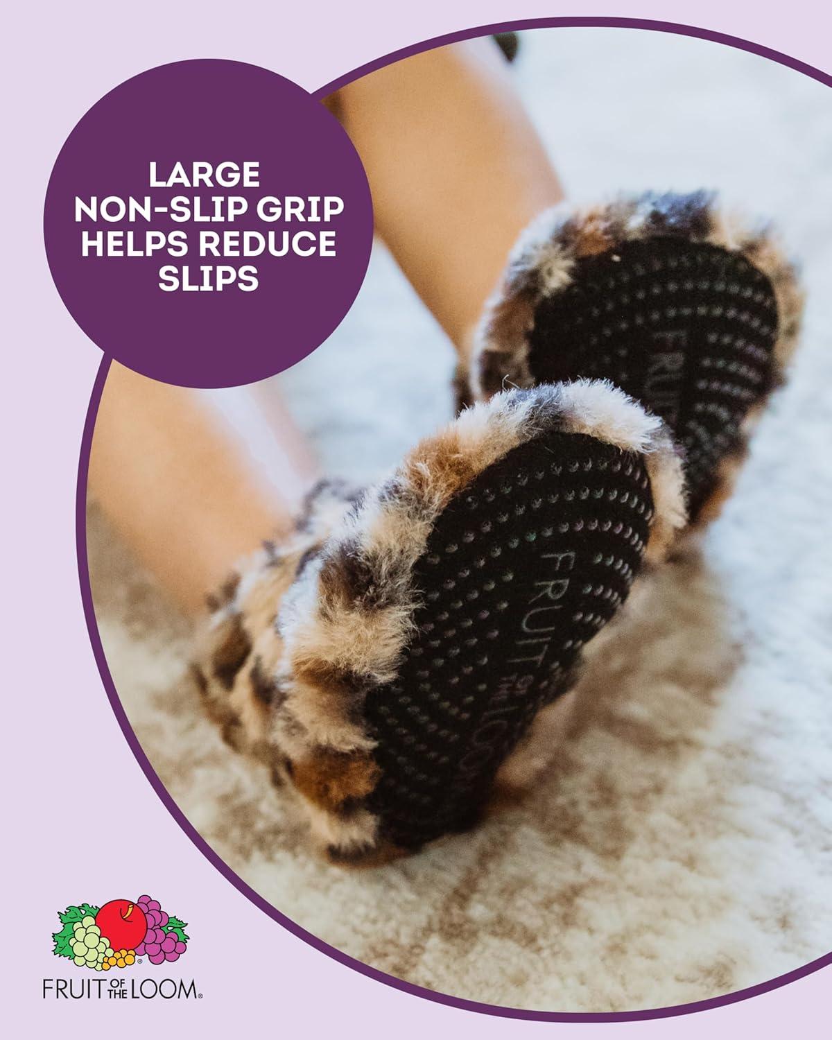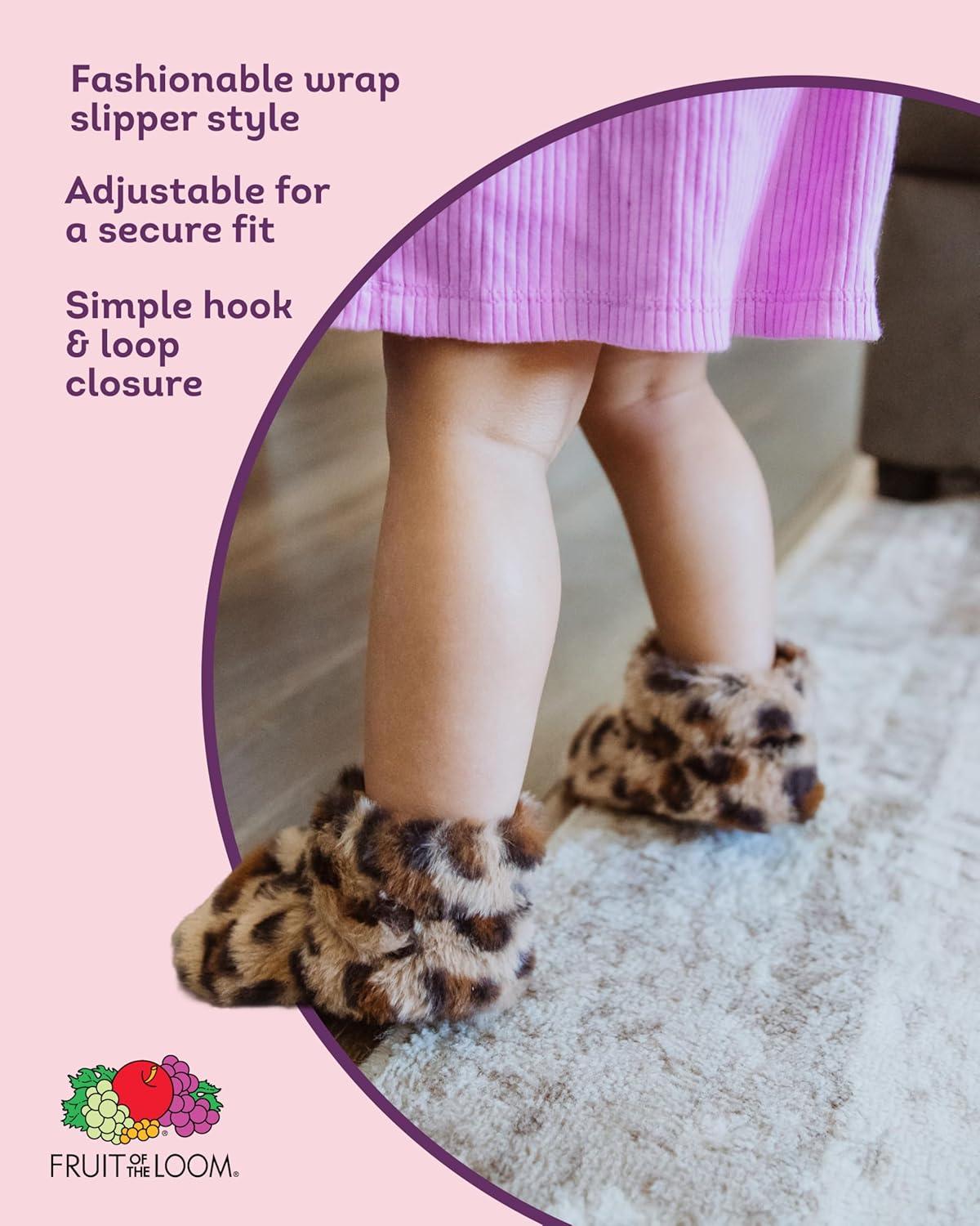 Fruit of the Loom Cozy Thermal Wrap Booties with Non-slip Grips for Baby Girls, Boys, Unisex -(Cheetah)