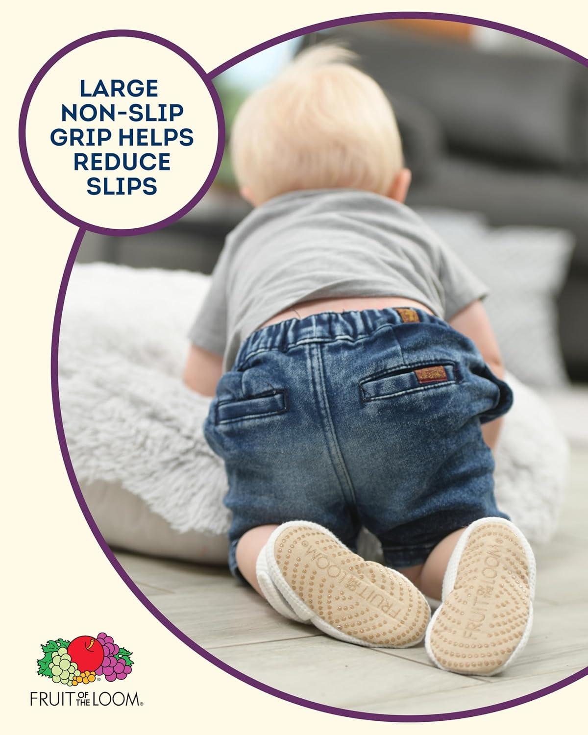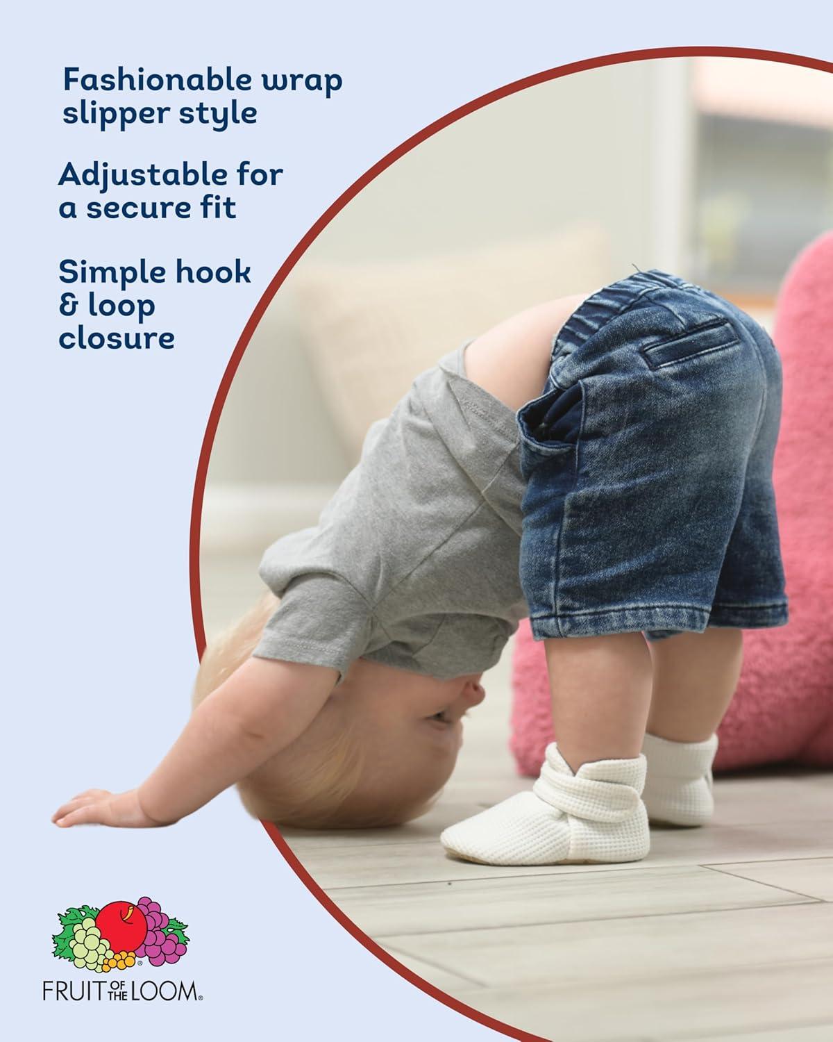 Fruit of the Loom Cozy Thermal Wrap Booties with Non-slip Grips for Baby Girls, Boys, Unisex -(Ivory)
