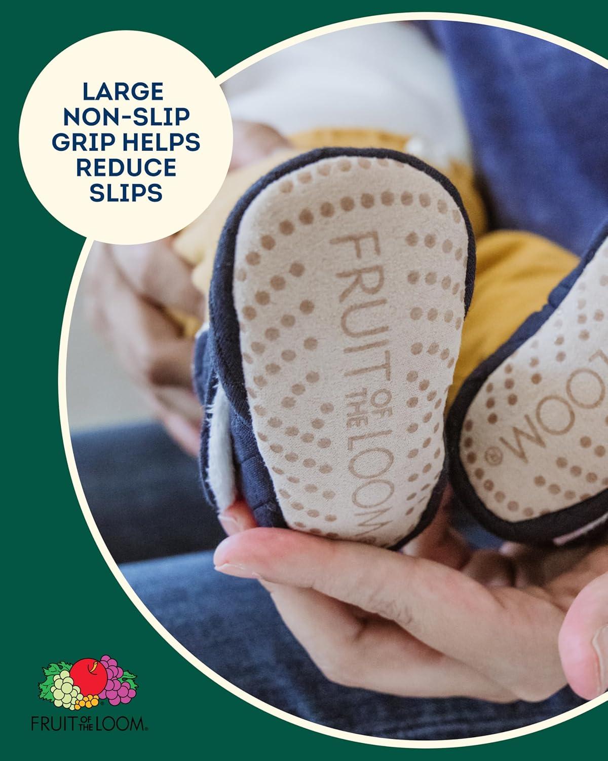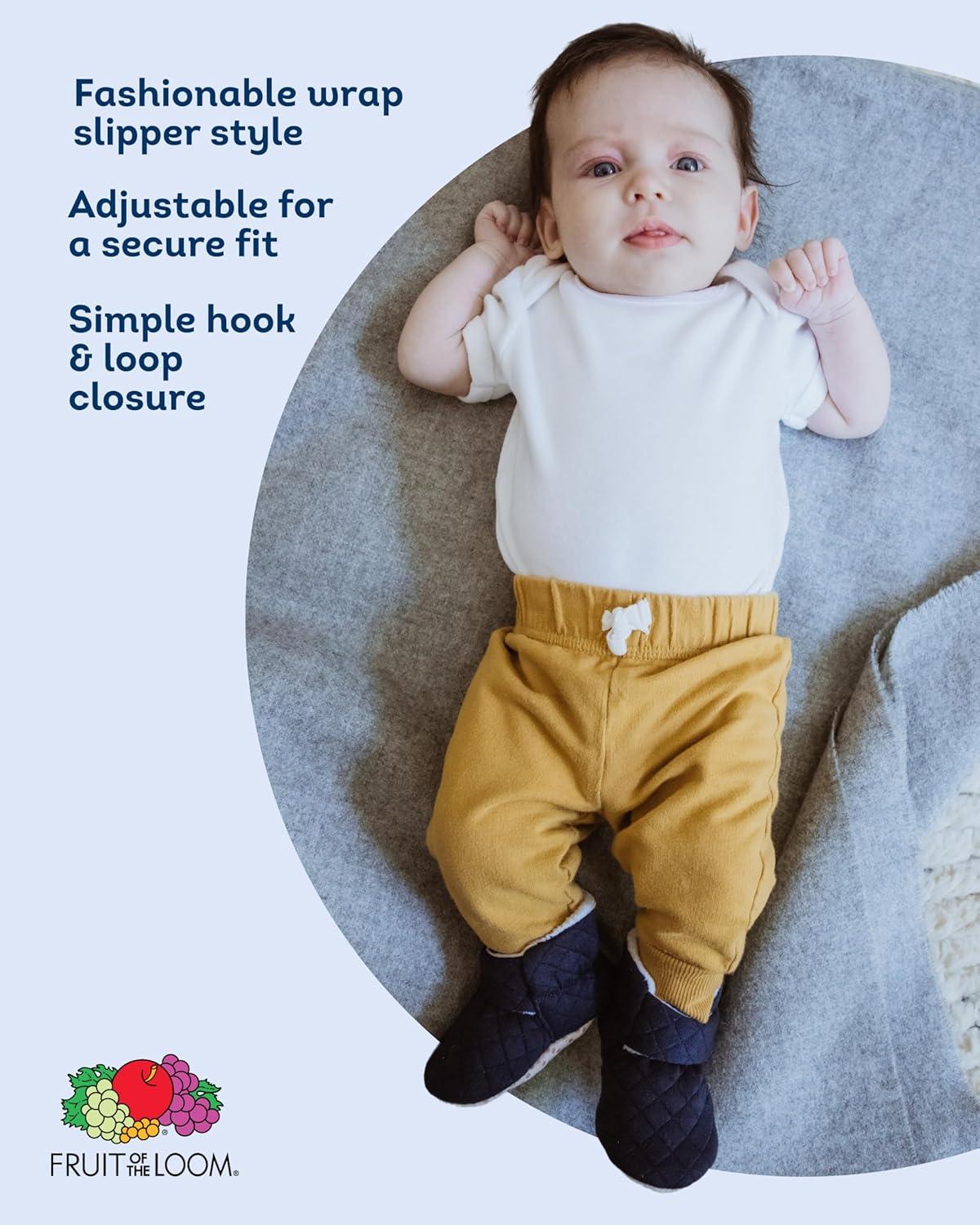 Fruit of the Loom Cozy Thermal Wrap Booties with Non-slip Grips for Baby Girls, Boys, Unisex -(Navy Jersey)