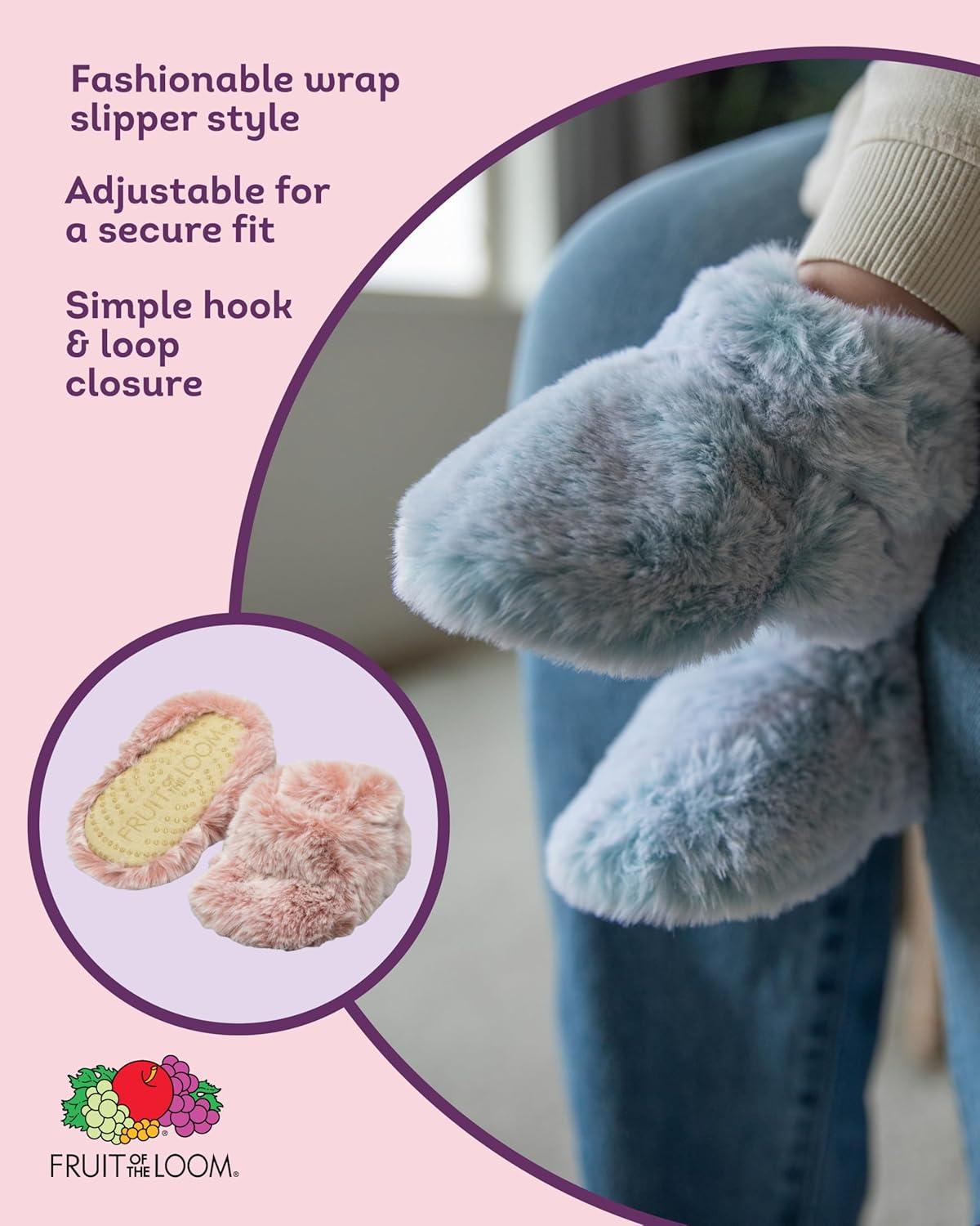 Fruit of the Loom Cozy Thermal Wrap Booties with Non-slip Grips for Baby Girls, Boys, Unisex -(Pink Faux Fur)