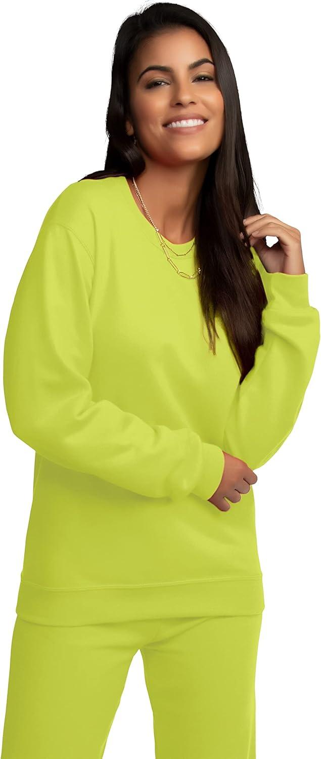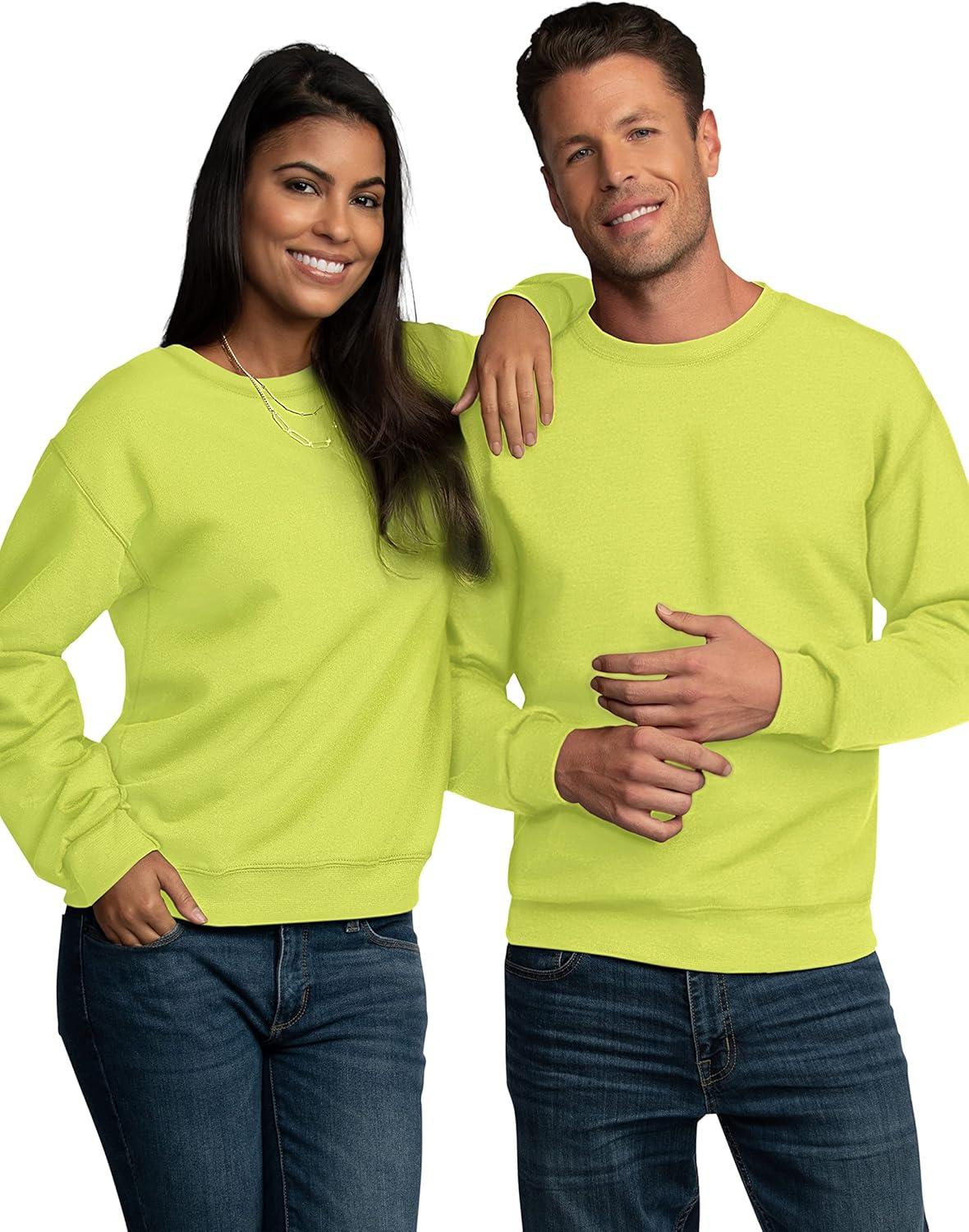 Fruit of the Loom Eversoft Fleece Crewneck Sweatshirts, Moisture Wicking & Breathable, Sizes S-4X(2 Pack – Safety Orange/Safety Green)
