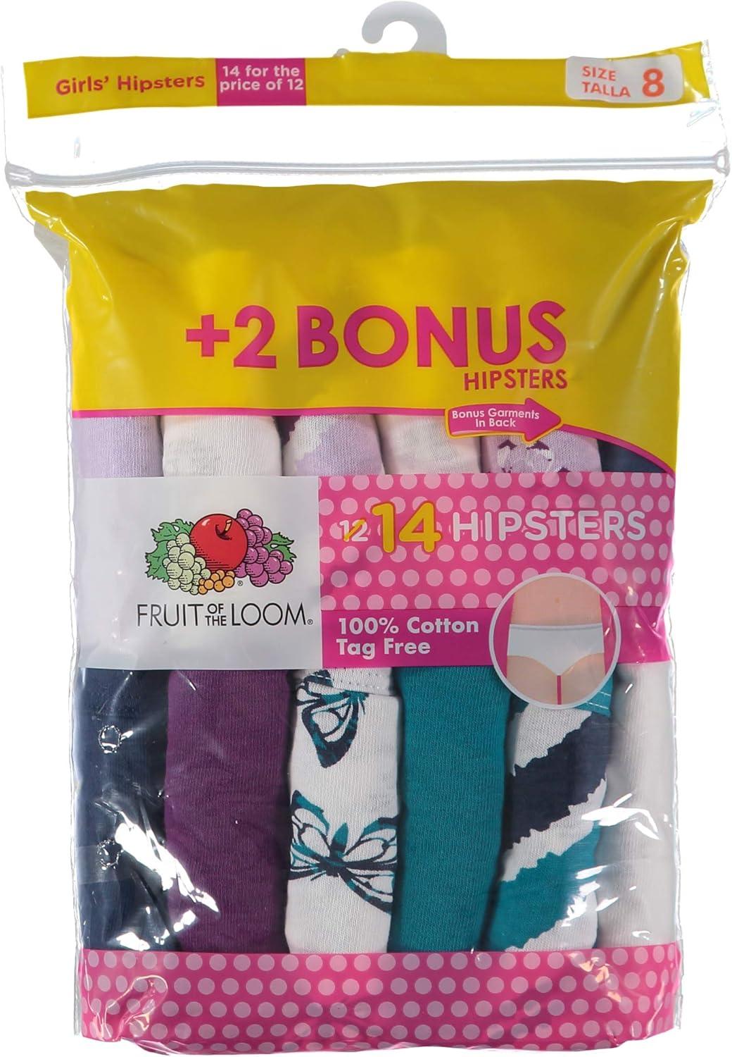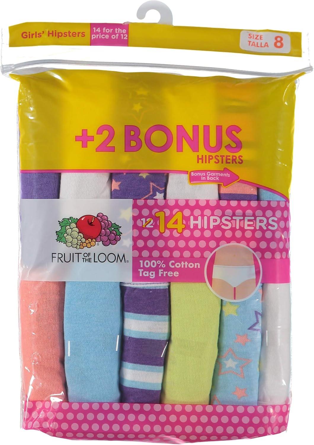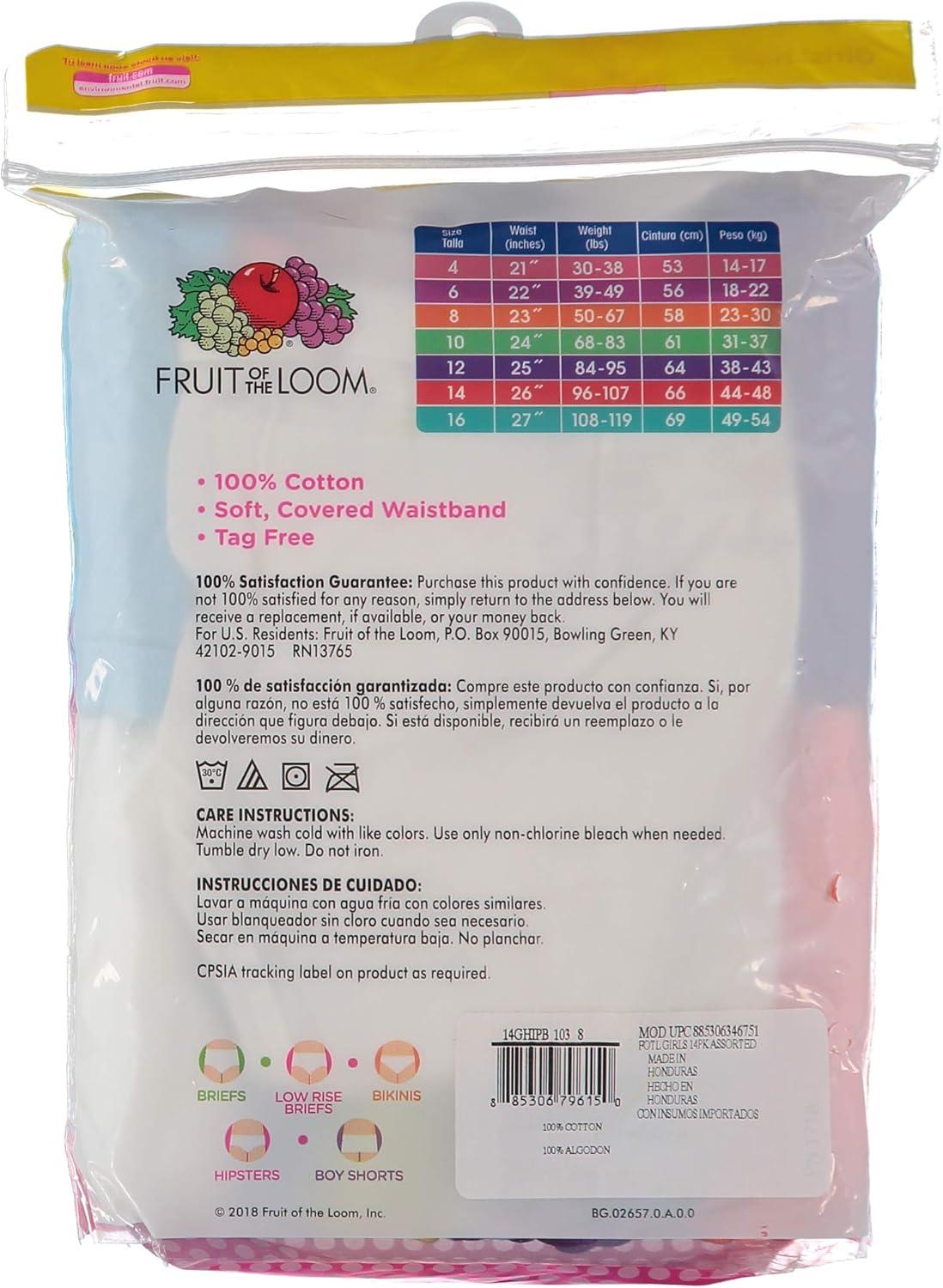 Fruit of the Loom Girls’ Cotton Hipster Underwear(14 Pack – Cotton Assorted)