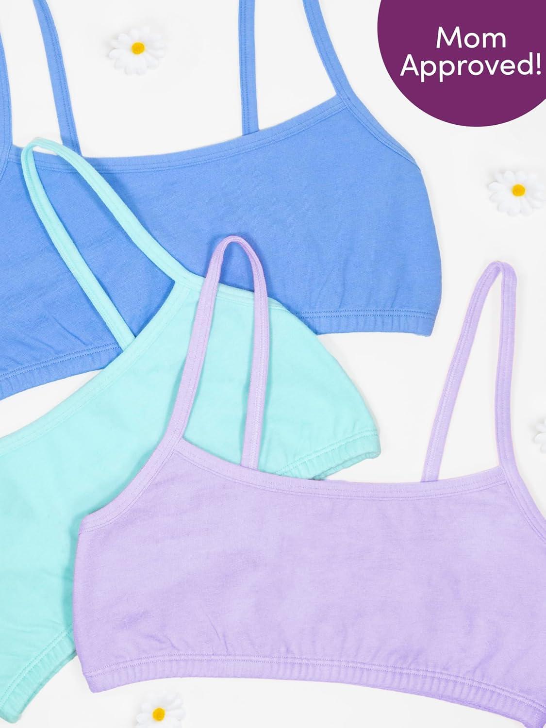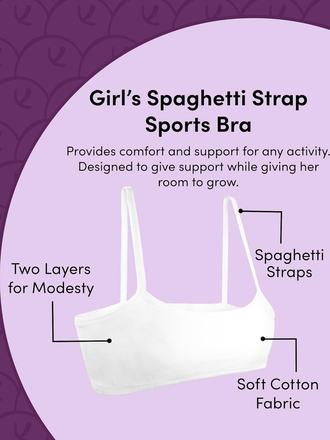 Fruit of the Loom Girls Cotton Spaghetti Strap Sport Bra(Aruba Blue/Hyacinth/Cornflower Blue/Light Nude/White/Black)