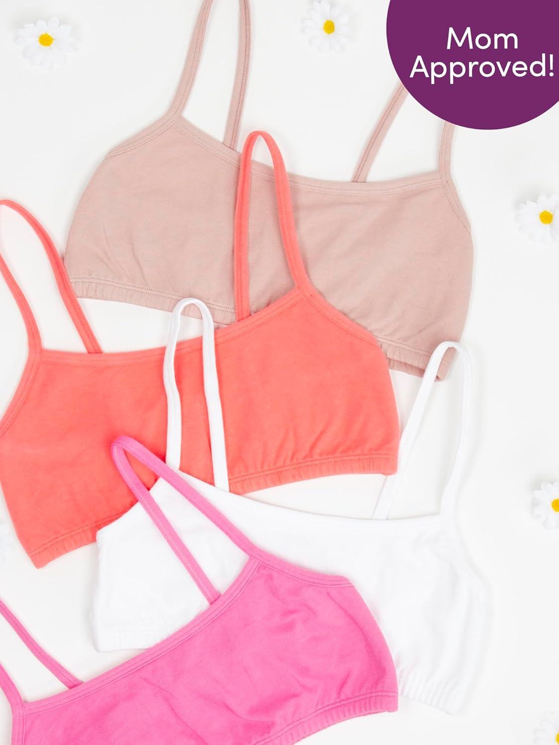 Fruit of the Loom Girls Cotton Spaghetti Strap Sport Bra(Miami Pink/Sunset Coral/Rose Shadow/White)
