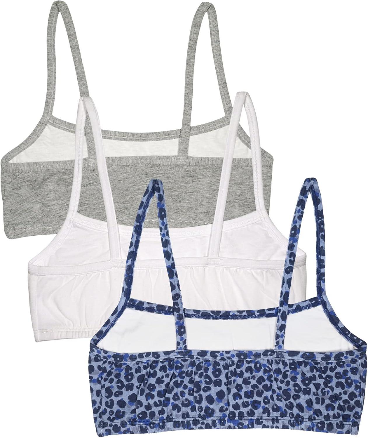 Fruit of the Loom Girls Cotton Spaghetti Strap Sport Bra(Multi Leo/White/Grey Heather)