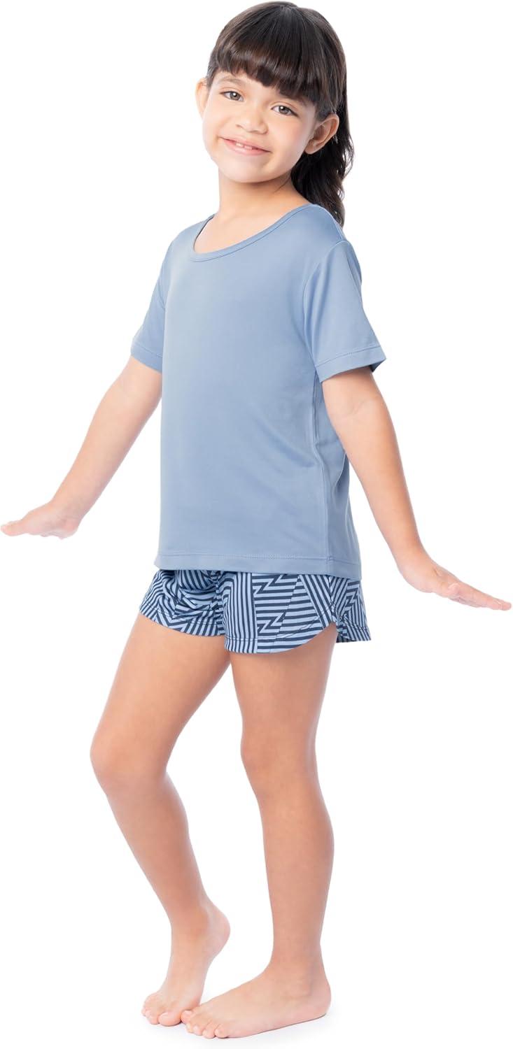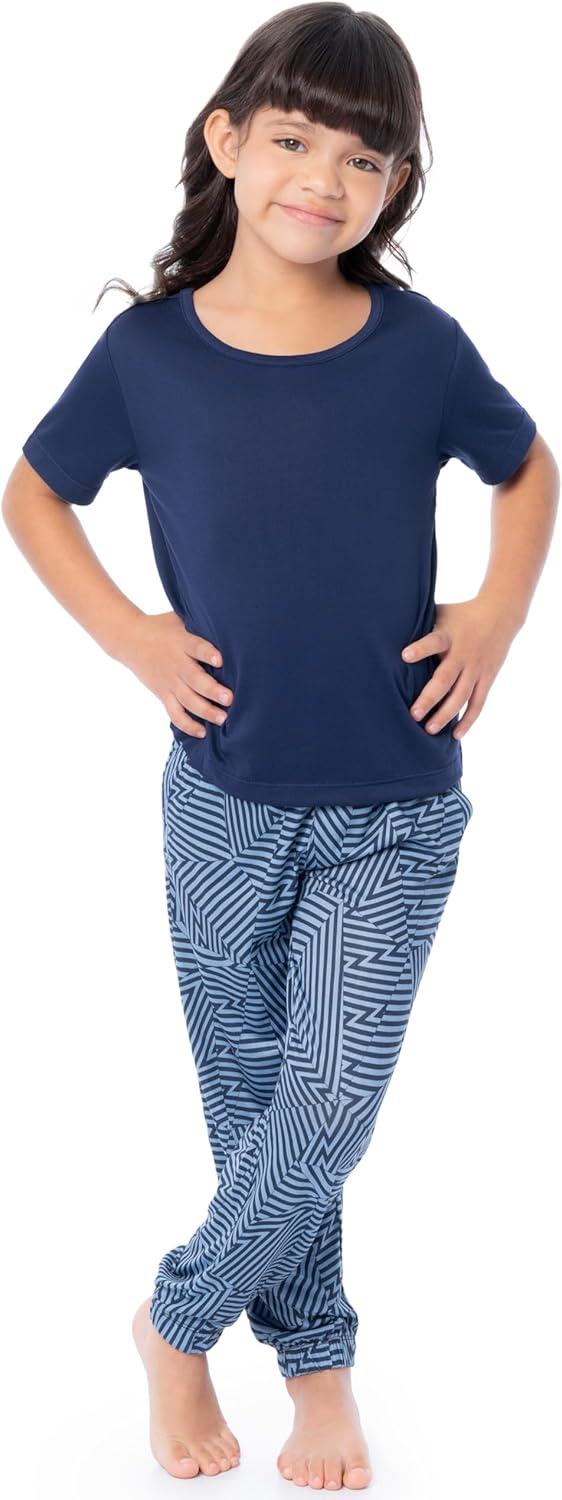 Get her ready for cozy nights with the Fruit of the Loom Girls' Loose Fit 4-Piece PJ Set. This thoughtfully designed sleepwear bundle includes two soft scoop neckline tees, jogger pants, and comfy shorts, offering a versatile mix for any season. The covered elastic waistband provides a secure yet gentle fit, while the stretch jersey fabric ensures maximum comfort and ease of movement. Perfect for lounging or bedtime, this pajama set combines comfort, functionality, and style to make every night a dream come true.