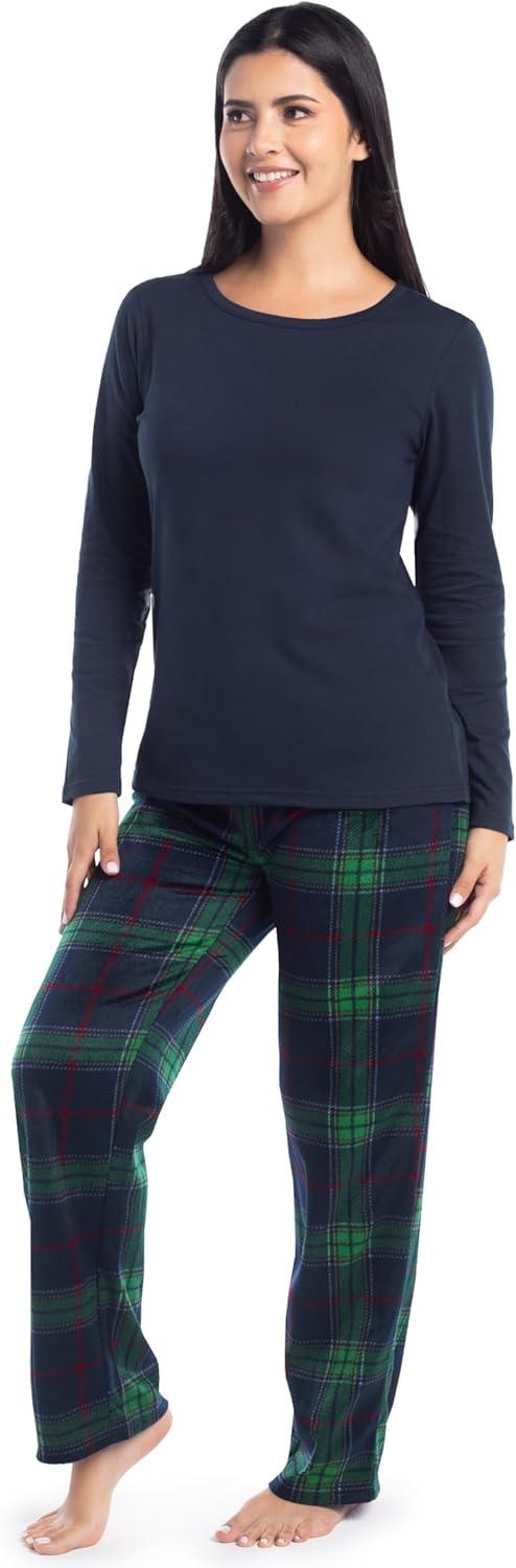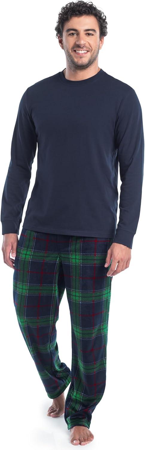 Fruit of the Loom Men Matching Holiday Family Sleep Pajama Set for Women, Men, and Kids(Navy/Green Plaid)