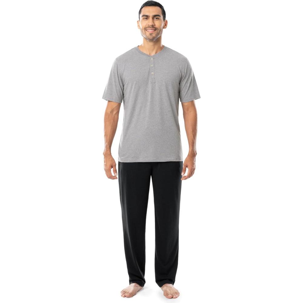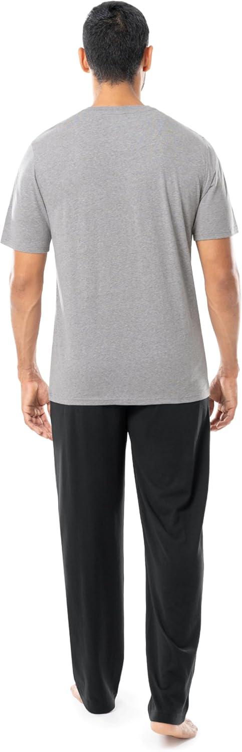 Fruit of the Loom Men’s 2-Piece Jersey Knit Pajama Set(Grey Heather/Black)
