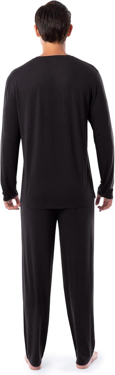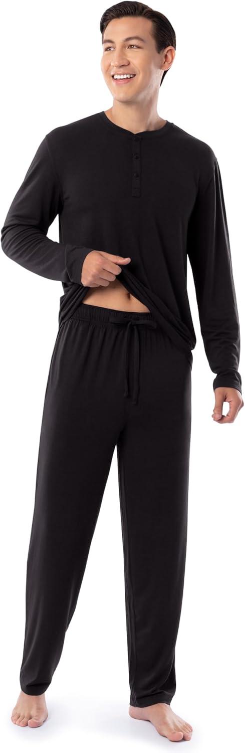 Fruit of the Loom Men’s 360 Stretch Long Sleeve Henley Top and Pant Sleep Pajama Set(Black)