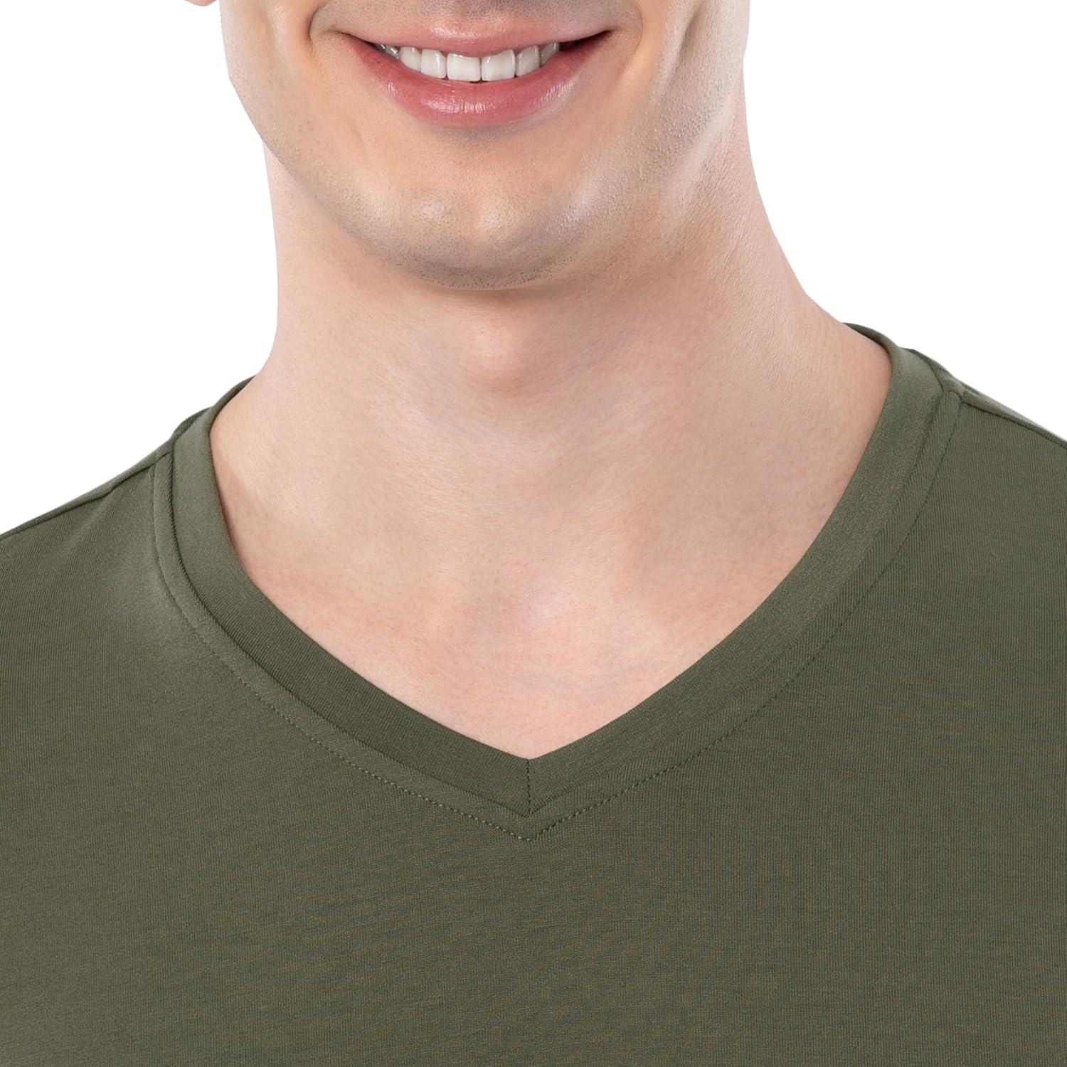 Fruit of the Loom mens 360 Stretch Short Sleeve V-neck Top and Pant Sleep Pajama Set(Dusty Olive)