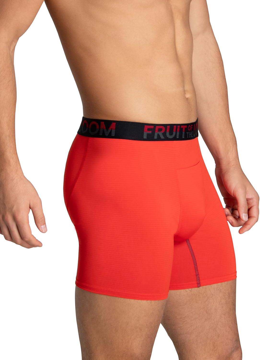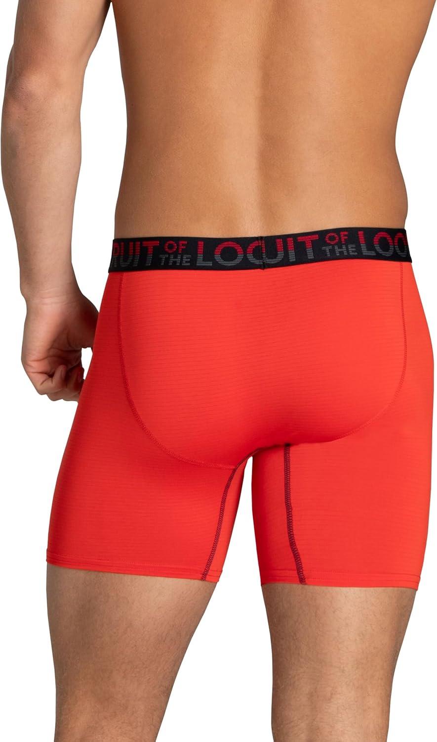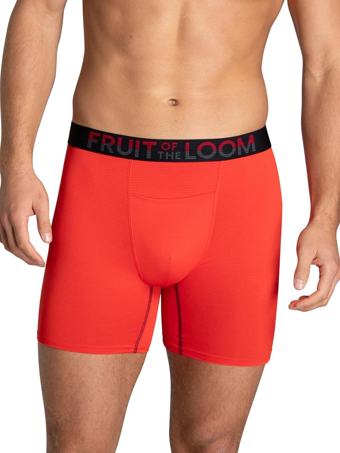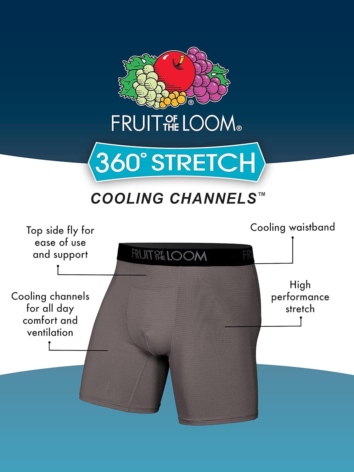 Fruit of the Loom mens 4-way Stretch Boxer Briefs | Lightweight & Moisture Wicking Underwear | Long Leg, Regular Leg & Trunk(Regular Leg – Cooling Channels – Colors May Vary)
