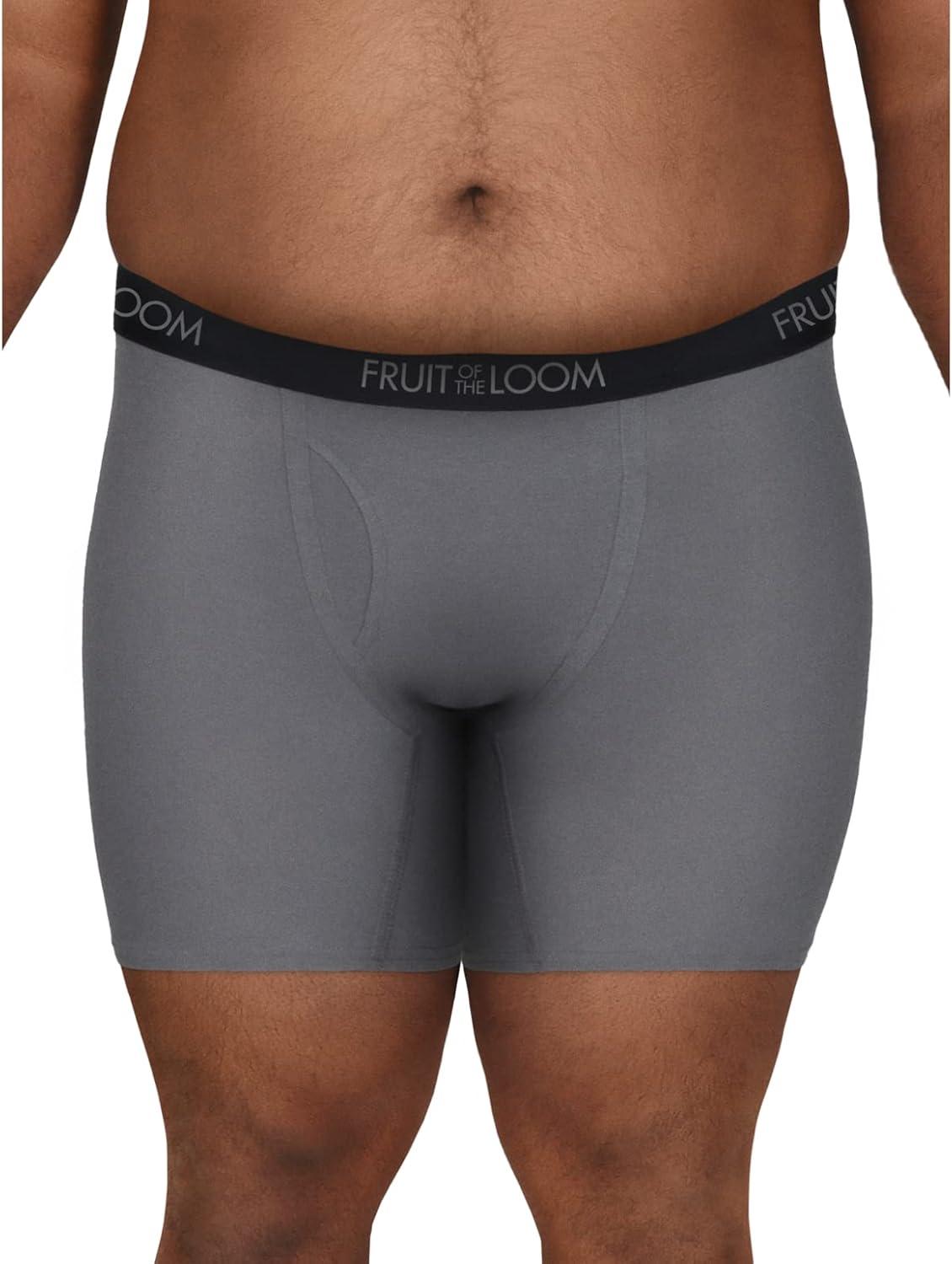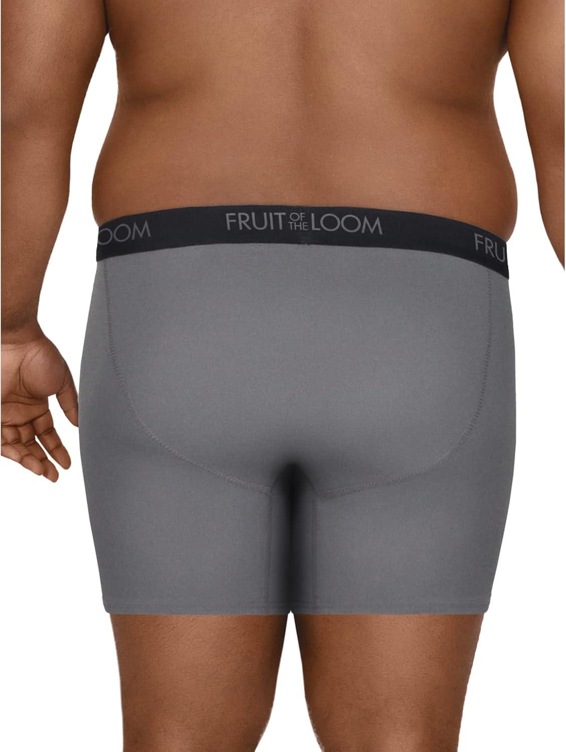 Versatility is key with our Fruit of the Loom comfort stretch boxer briefs. Not only are they great for everyday wear, but they are ideal for someone who leads more of an active lifestyle. Designed for fuller midsection these boxer briefs have extra room in waist and seat for ease of movement. These men's boxer briefs have a 4-way stretch and mositure wicking capablities so you remain comfortable throughout the day.