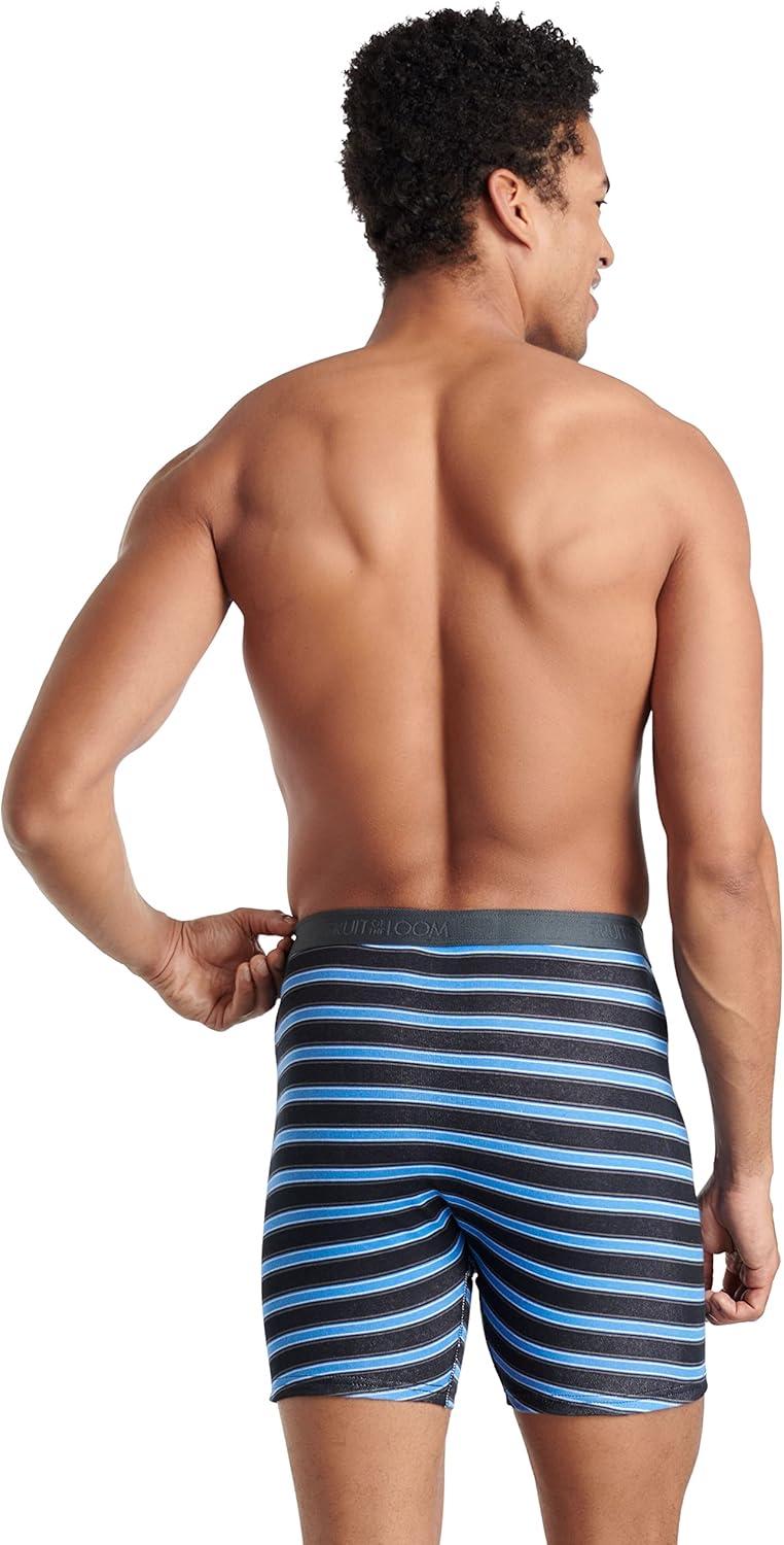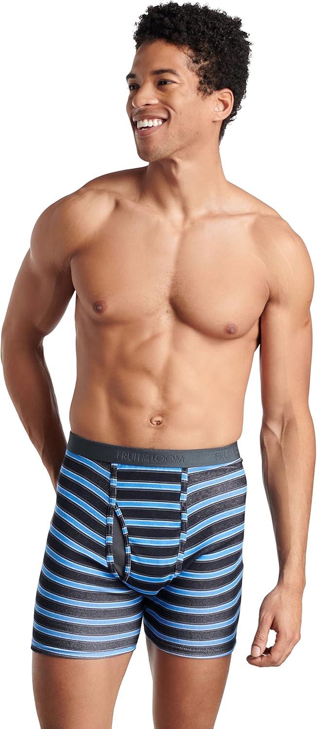 Fruit of the Loom Men’s Big & Tall Undershirt Multipacks(Boxer Brief – 4 Pack – Stripe/Solid)