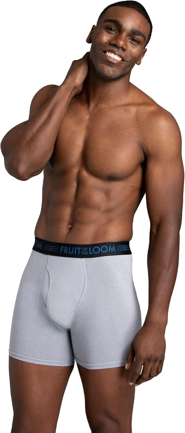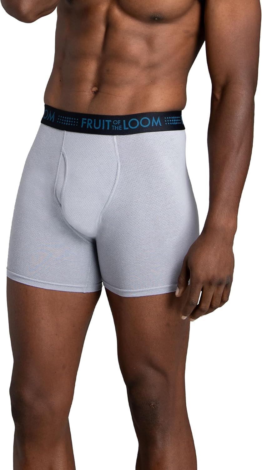 Fruit of the Loom Men’s Breathable Boxer Briefs, Moisture Wicking Underwear, Assorted Color Multipacks(Cotton Mesh – Black/Grey)