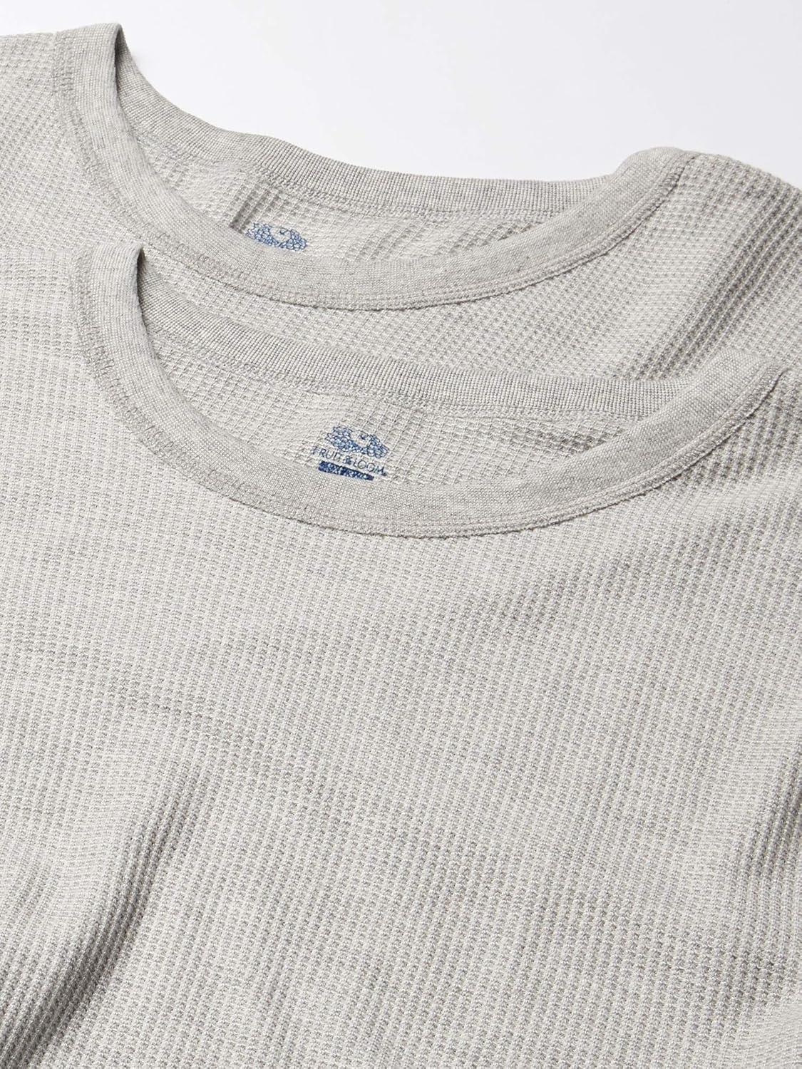 Fruit of the Loom Men’s Classic Midweight Waffle Thermal Underwear Crew Top(Light Grey Heather/Light Grey Heather (2-pack))