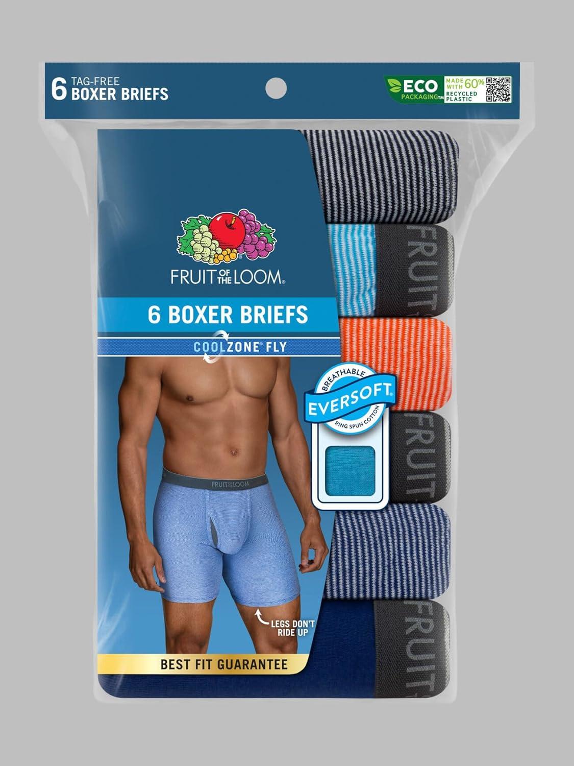 Fruit of the Loom Men’s Coolzone Boxer Briefs, Moisture Wicking & Breathable, Assorted Color Multipacks(6 Pack – Stripe/Solid)