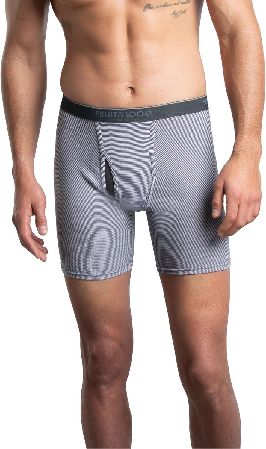 The Fruit of the Loom® cotton boxer briefs are better than ever! We've added EverSoft® fabric that provides premium softness wash after wash. This collection of black and grey CoolZone® men's boxer briefs are designed with a mesh fly that provides ventilation and support right where you need it most. With legs that don't ride up, and strategically placed breathable mesh, our CoolZone® boxer briefs will keep you cool and comfortable all day. Each pair is carefully crafted and includes moisture wicking benefits designed to help keep you dry and fresh.