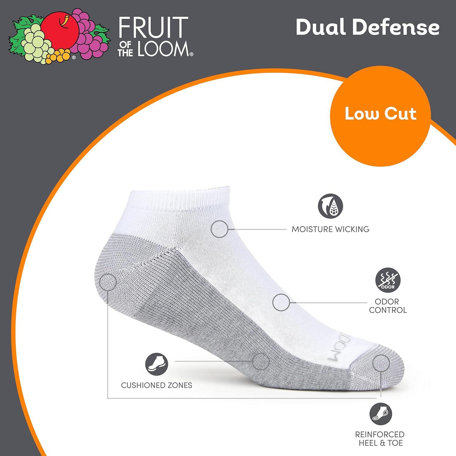 Fruit of the Loom Men’s Dual Defense Low Cut Socks (12 Pack)(White)