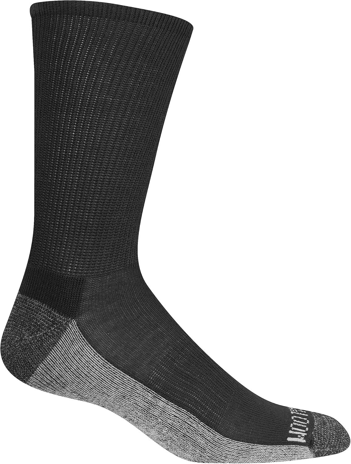 Fruit of the Loom socks are comfortable, affordable, and built to last. These men's crew socks feature arch support, a durable gray cushioned sole, and spandex throughout. The black silhouette features stays black fabrication. 6 pairs per package. Fits men's shoe size 6-12.