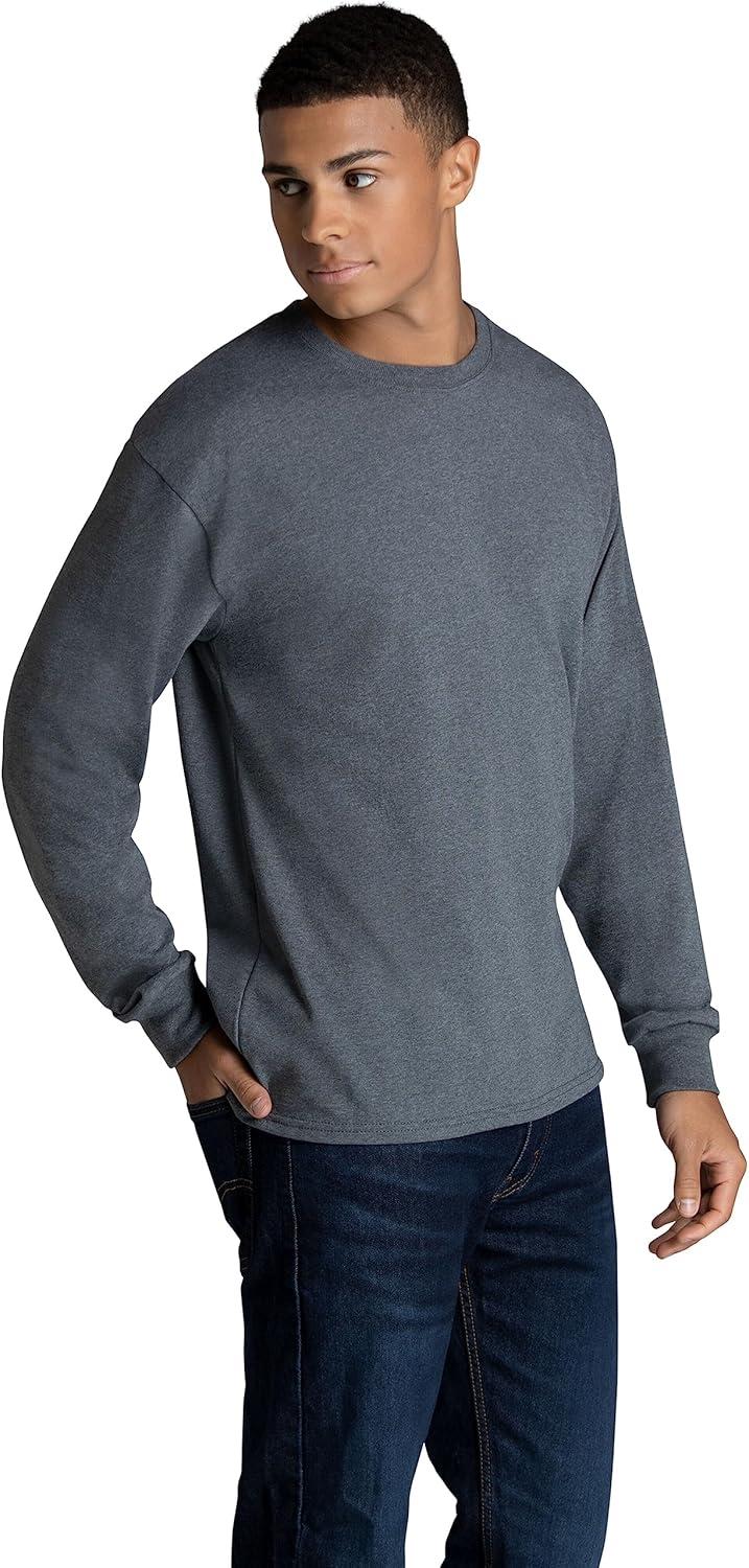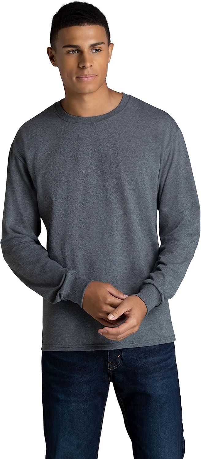 Fruit of the Loom Mens Eversoft Cotton Long Sleeve T Shirts, Breathable & Moisture Wicking with Odor Control(Long Sleeve – Black Heather)