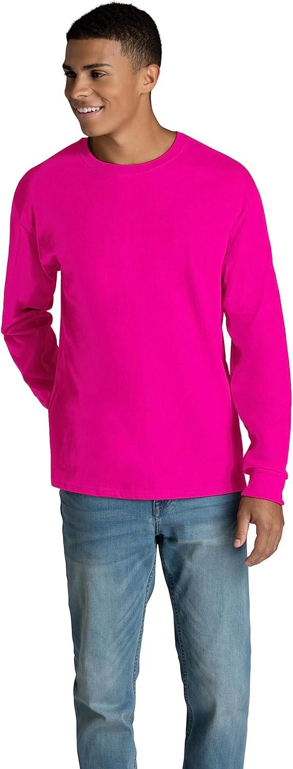 Fruit of the Loom Mens Eversoft Cotton Long Sleeve T Shirts, Breathable & Moisture Wicking with Odor Control(Long Sleeve – Cyber Pink)
