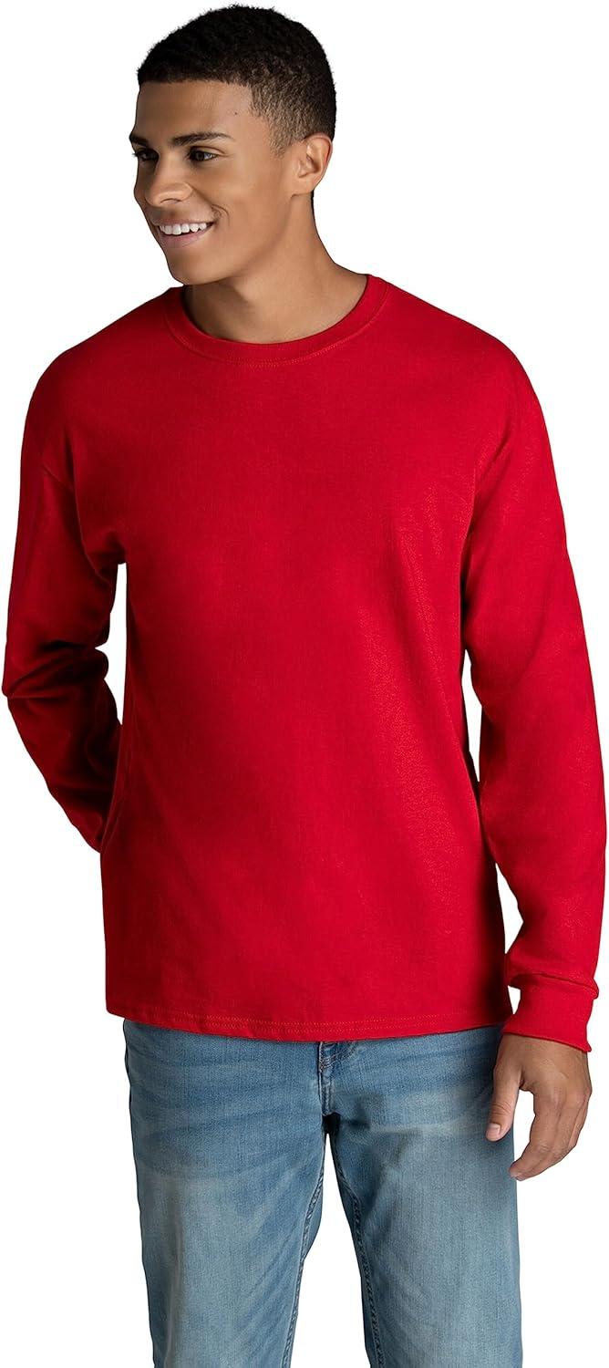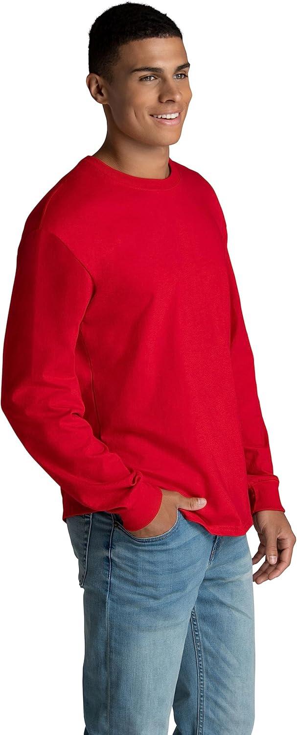 Fruit of the Loom Mens Eversoft Cotton Long Sleeve T Shirts, Breathable & Moisture Wicking with Odor Control(Long Sleeve – True Red)