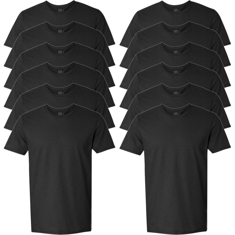 Fruit of the Loom Men’s Eversoft Cotton Odor Control & Breathable Moisture Wicking T-Shirts(Crew – 12 Pack – Black)