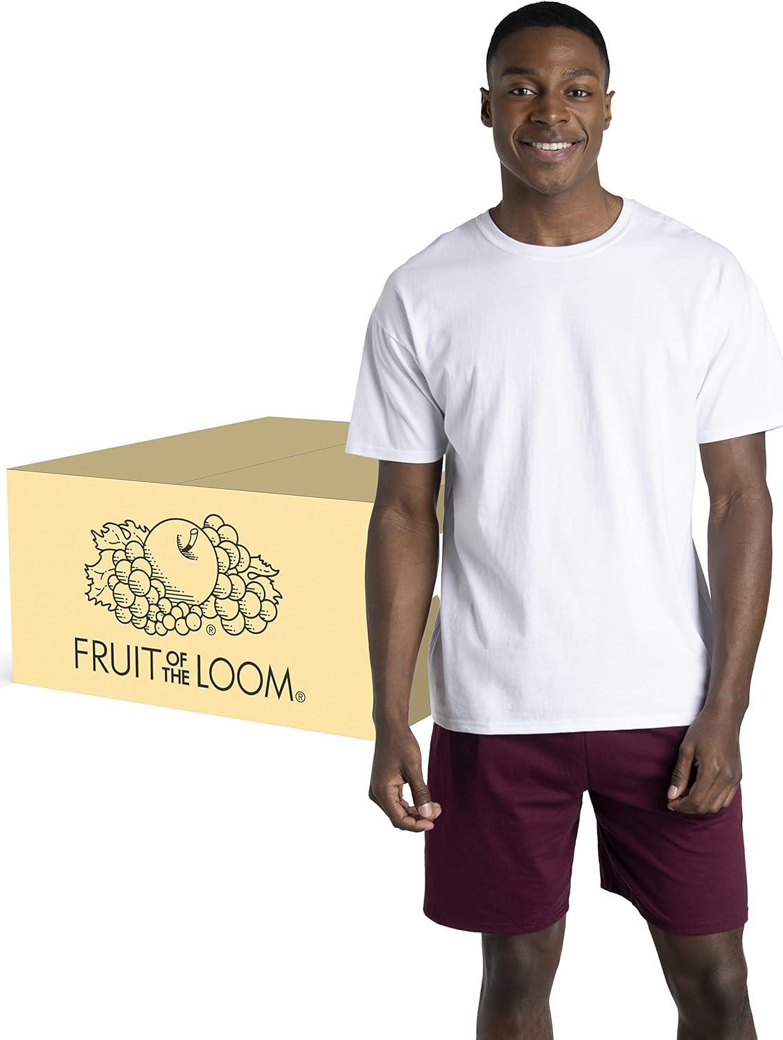 Fruit of the Loom Men’s Eversoft Cotton Odor Control & Breathable Moisture Wicking T-Shirts(Crew – 12 Pack – White)