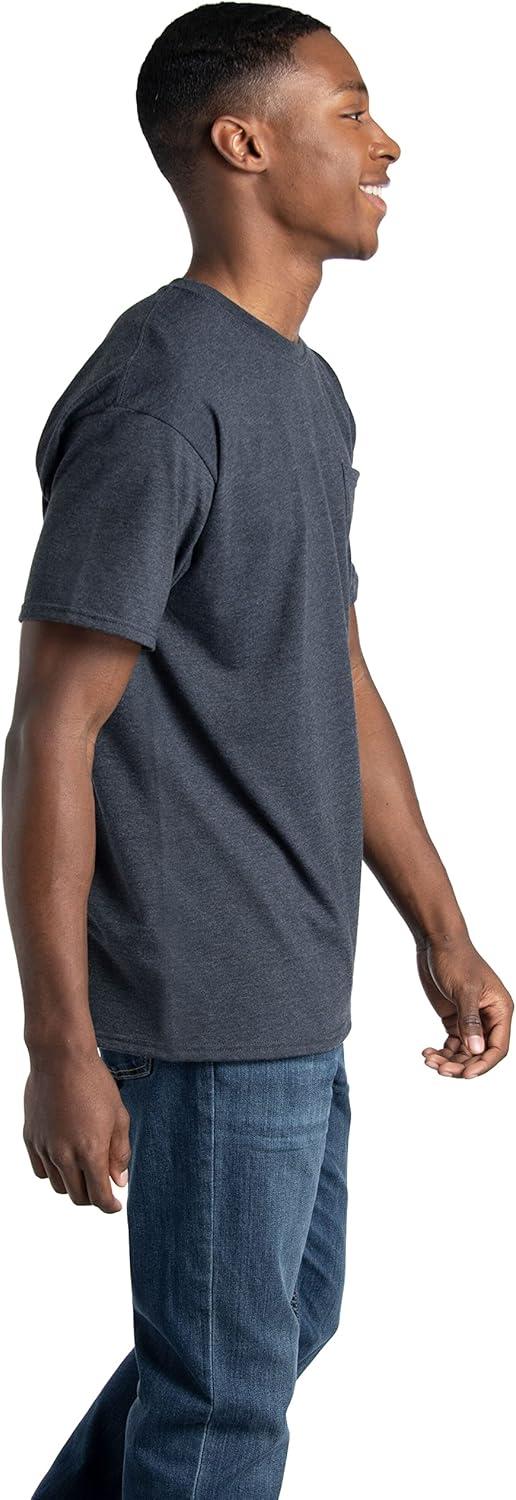Fruit of the Loom Mens Eversoft Cotton Short Sleeve Pocket T-Shirts, Breathable & Tag Free, 2-Pack(2 Pack – Black Heather)