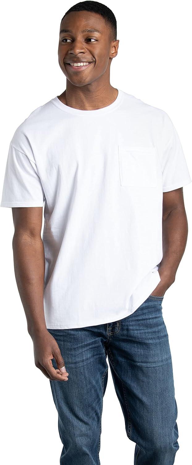 Fruit of the Loom Mens Eversoft Cotton Short Sleeve Pocket T-Shirts, Breathable & Tag Free, 2-Pack(2 Pack – White)