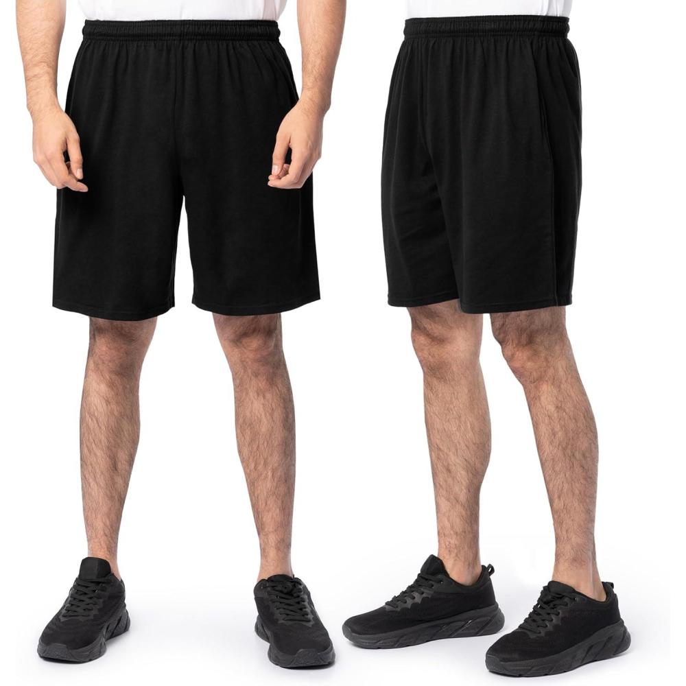 Fruit of the Loom Men’s Eversoft Cotton Shorts with Pockets (S-4XL)(2 Pack – Black)