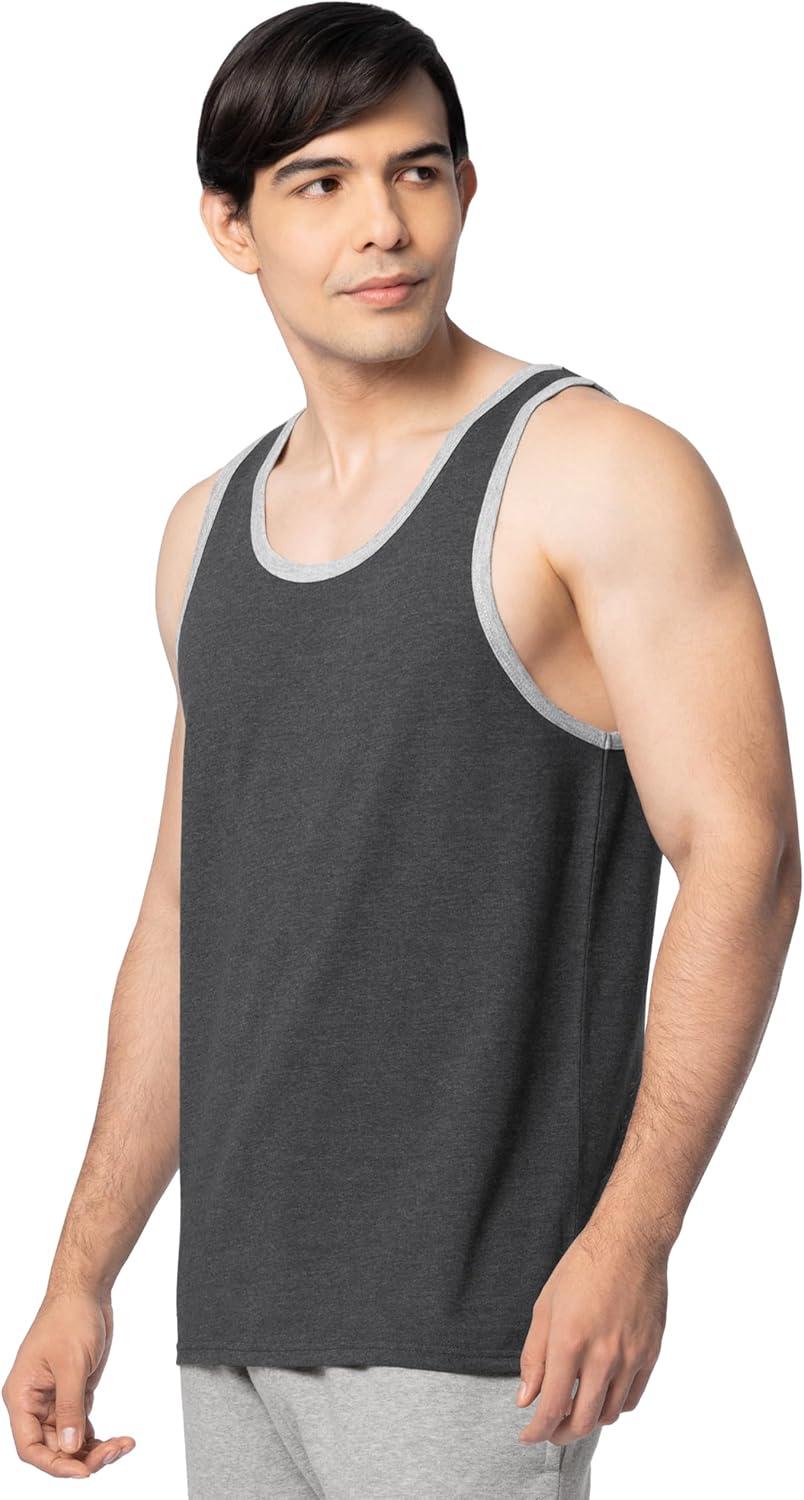 Fruit of the Loom Men’s Eversoft Cotton Sleeveless T Shirts, Breathable & Moisture Wicking with Odor Control, Sizes S-4X(Black Heather)