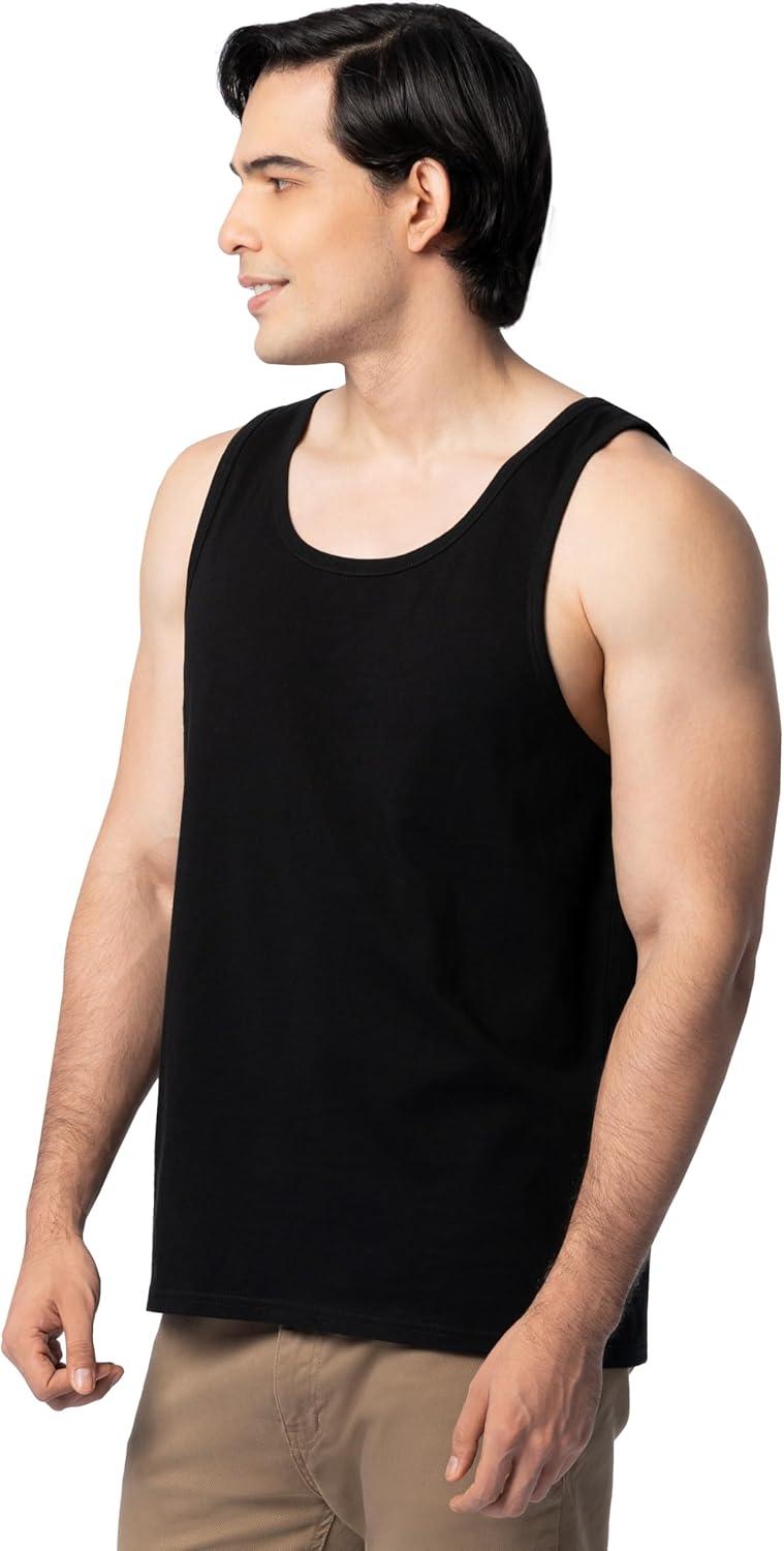 Fruit of the Loom Men’s Eversoft Cotton Sleeveless T Shirts, Breathable & Moisture Wicking with Odor Control, Sizes S-4X(Black Ink)