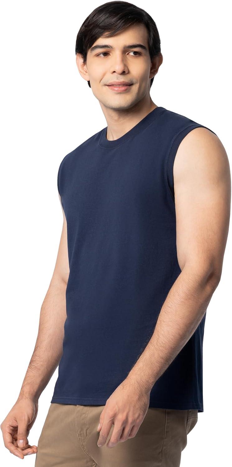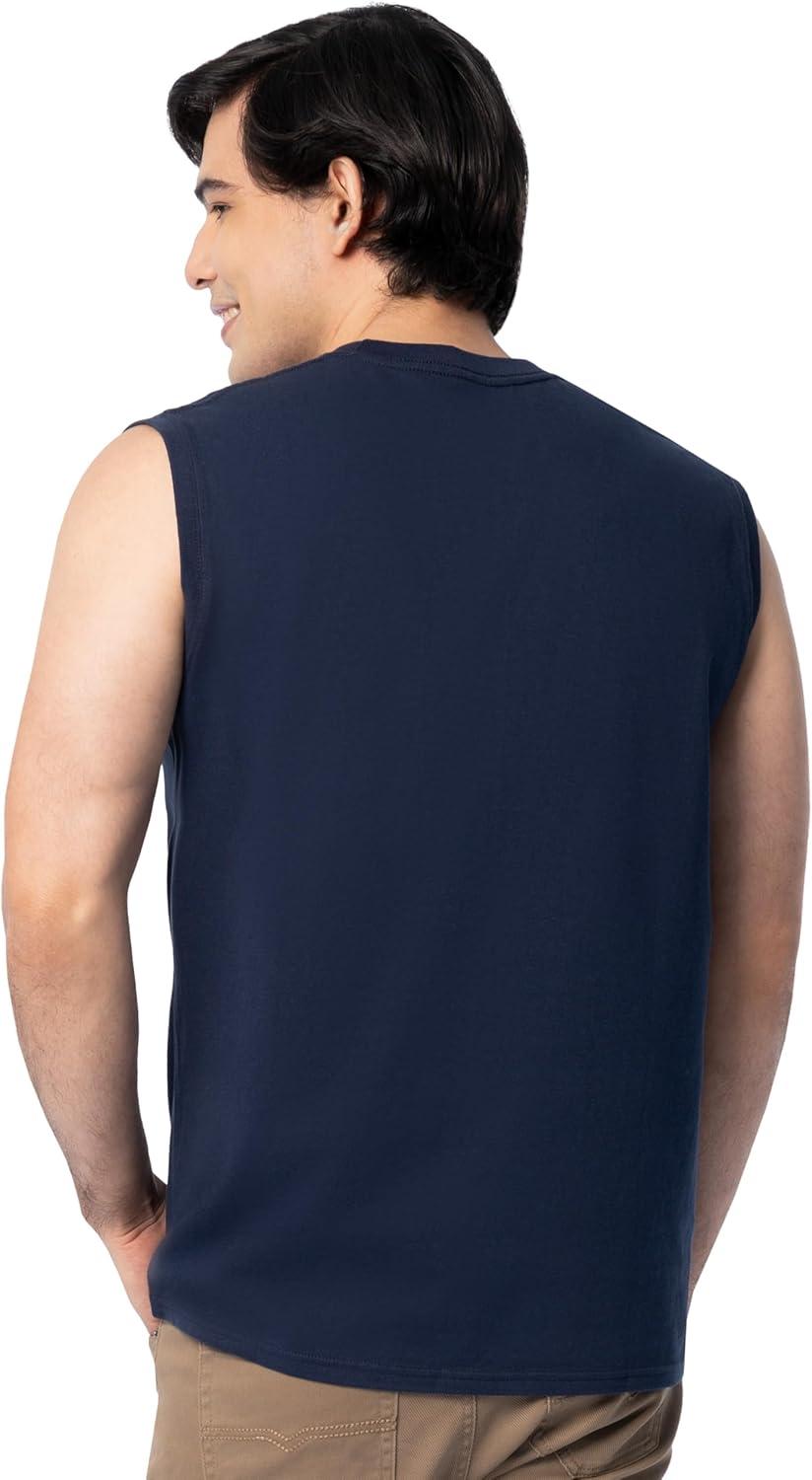 Fruit of the Loom Men’s Eversoft Cotton Sleeveless T Shirts, Breathable & Moisture Wicking with Odor Control, Sizes S-4X(Navy)