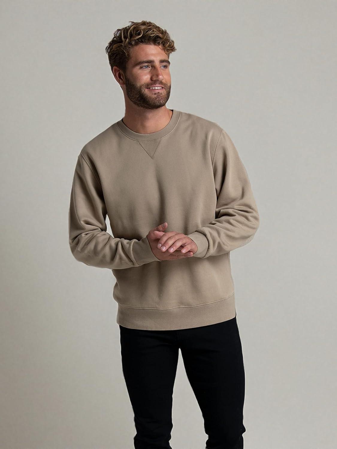 Fruit of the Loom Men’s Eversoft Fleece Crewneck Sweatshirts, Moisture Wicking & Breathable, Sizes S-4x(Garment Dyed Khaki)