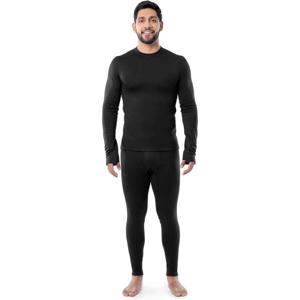 Fruit of the Loom mens Heavyweight Brushed Back Fleece Thermal Underwear Base Layer Set(Black)