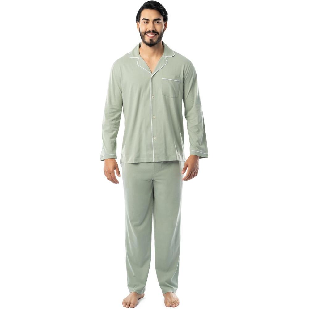 Fruit of the Loom mens Jersey Knit Pajama Sleep Set(Green)