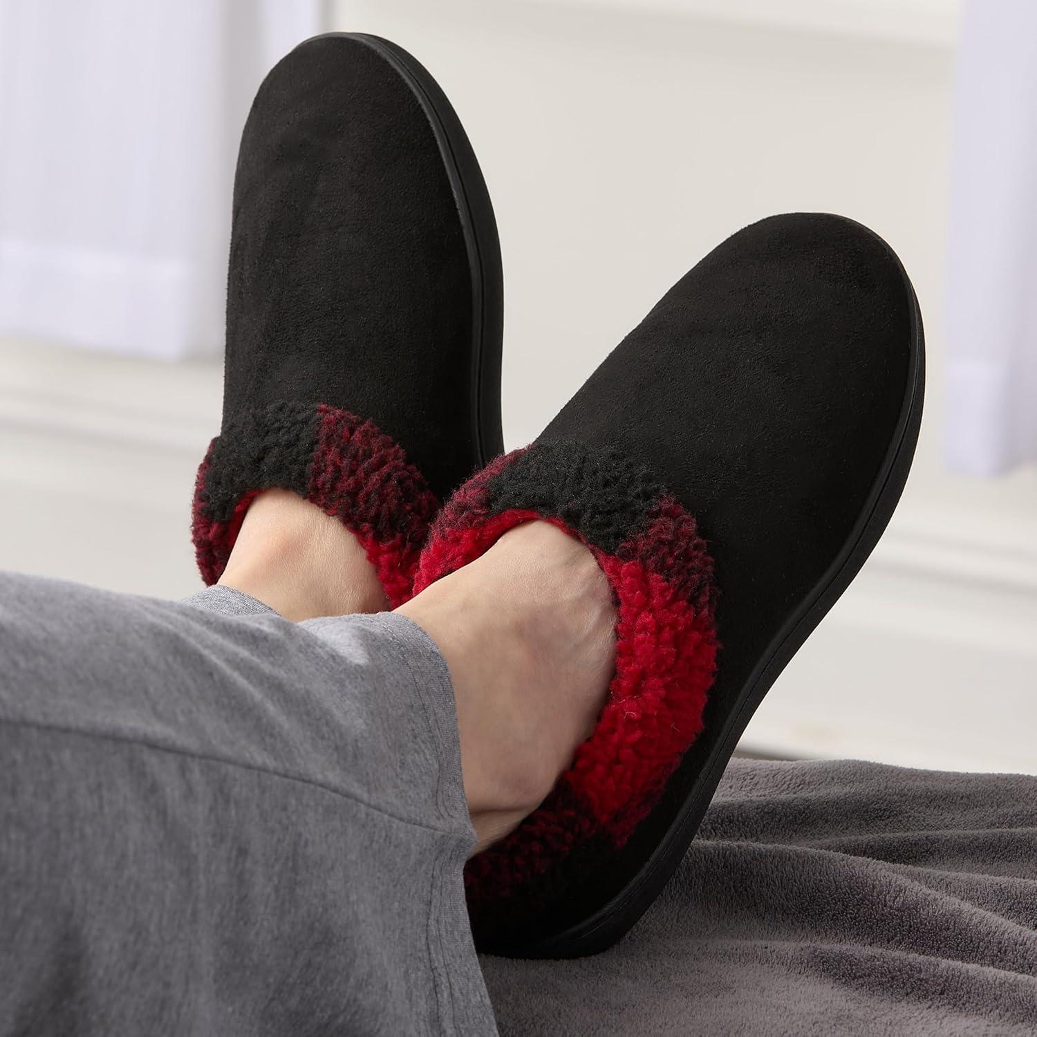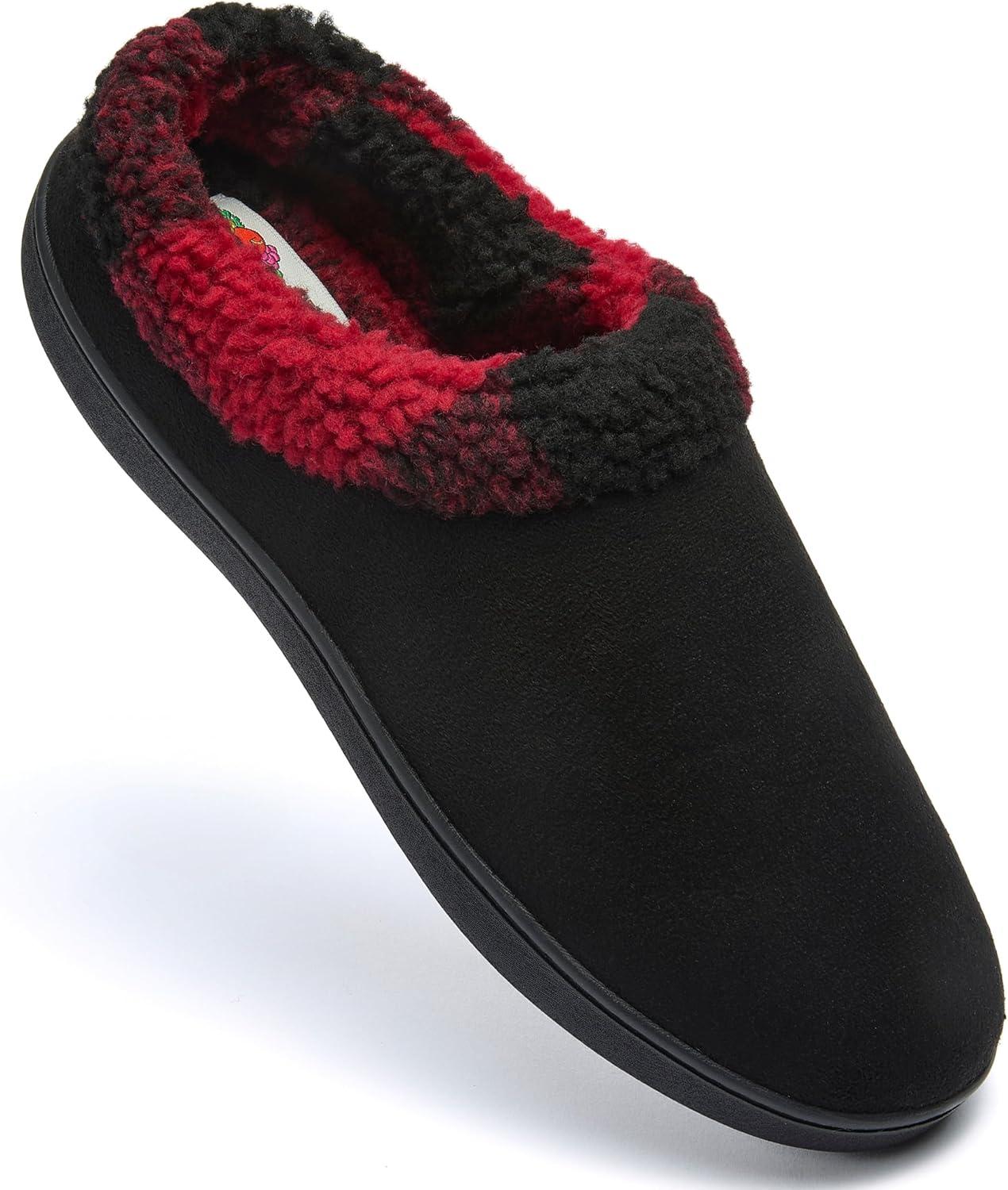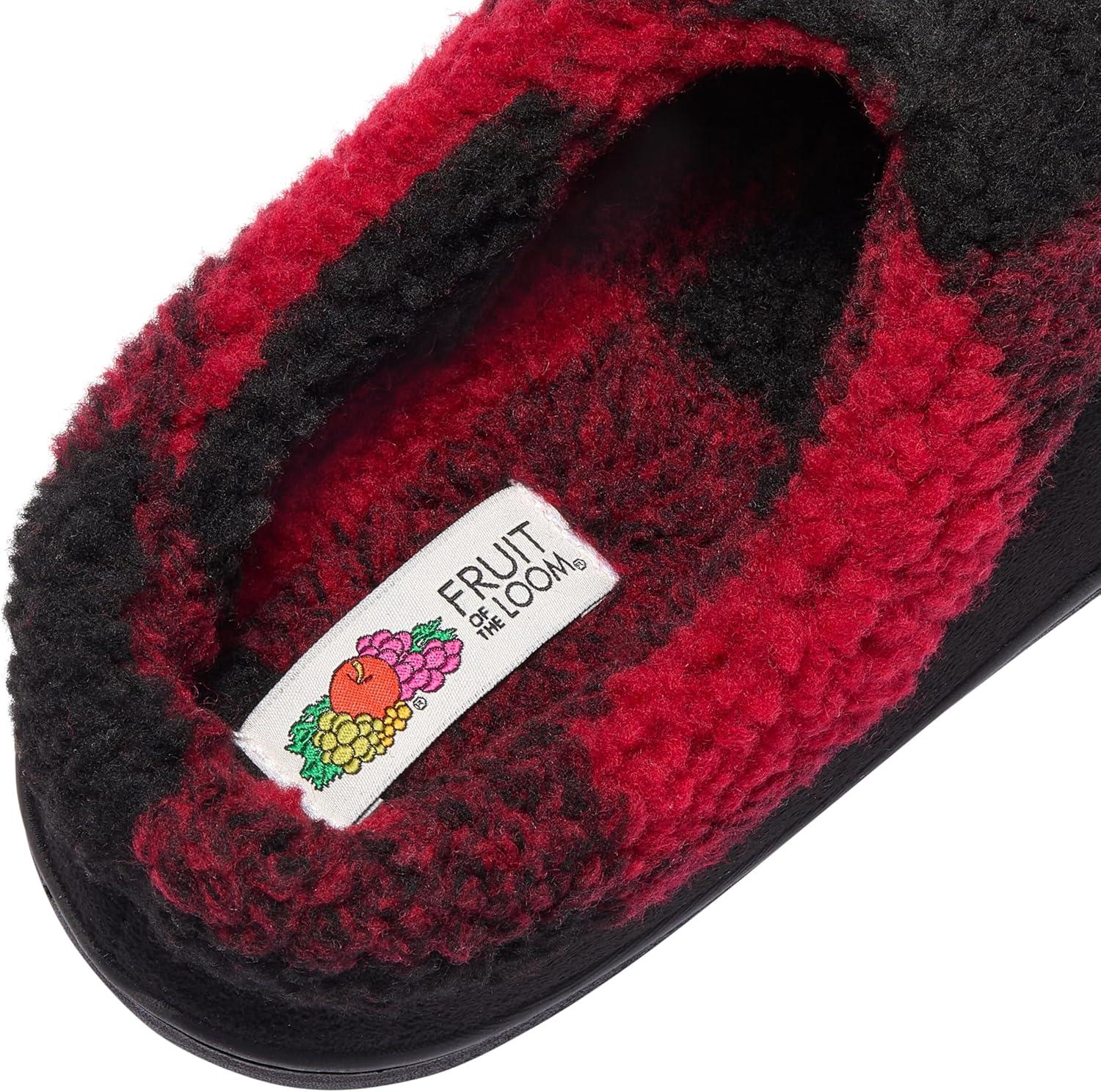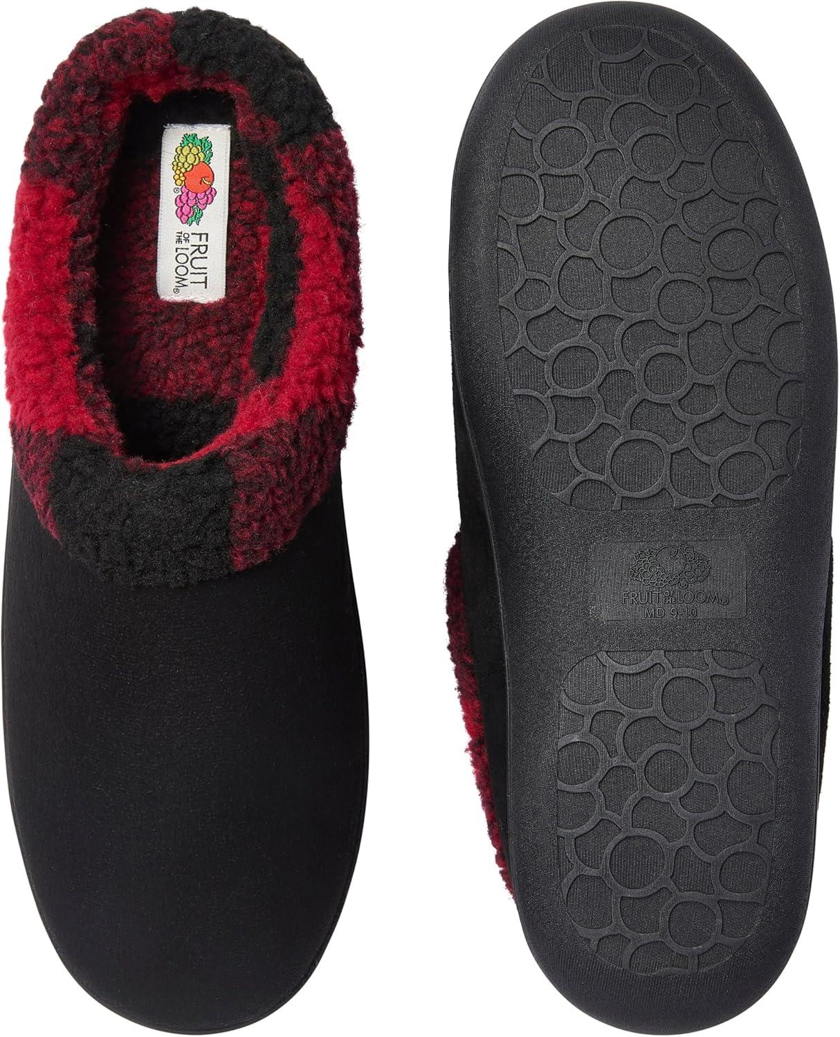 Fruit of the Loom Mens Memory Foam Slippers, Cozy Soft Sherpa Lined Microsuede Clogs, Indoor/Outdoor House Shoes, Cozy Gifts for Men, Dad, Husband(Black)