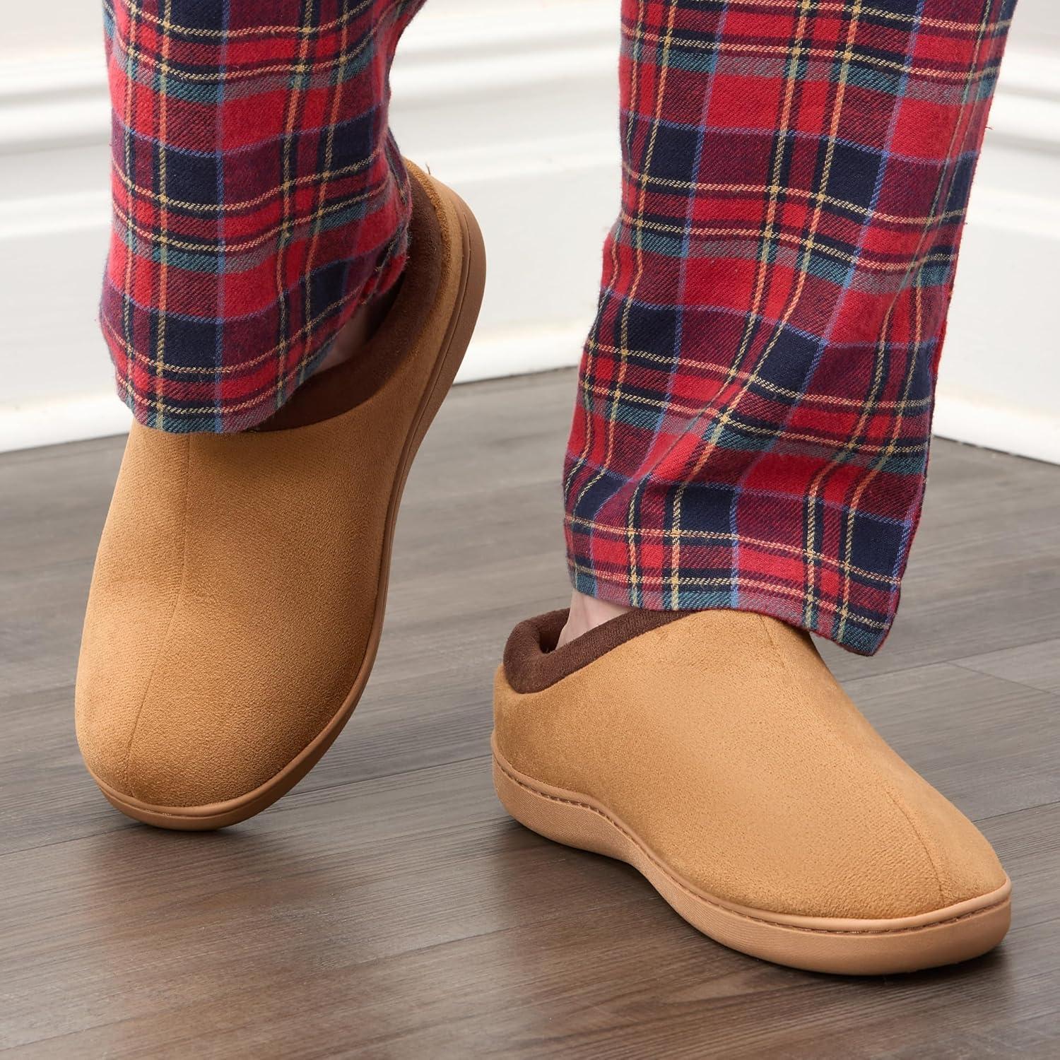 Fruit of the Loom Men’s Memory Foam Slippers – Microsuede Clogs – Indoor/Outdoor, Machine Washable Zapatillas Cómodas(Tan)