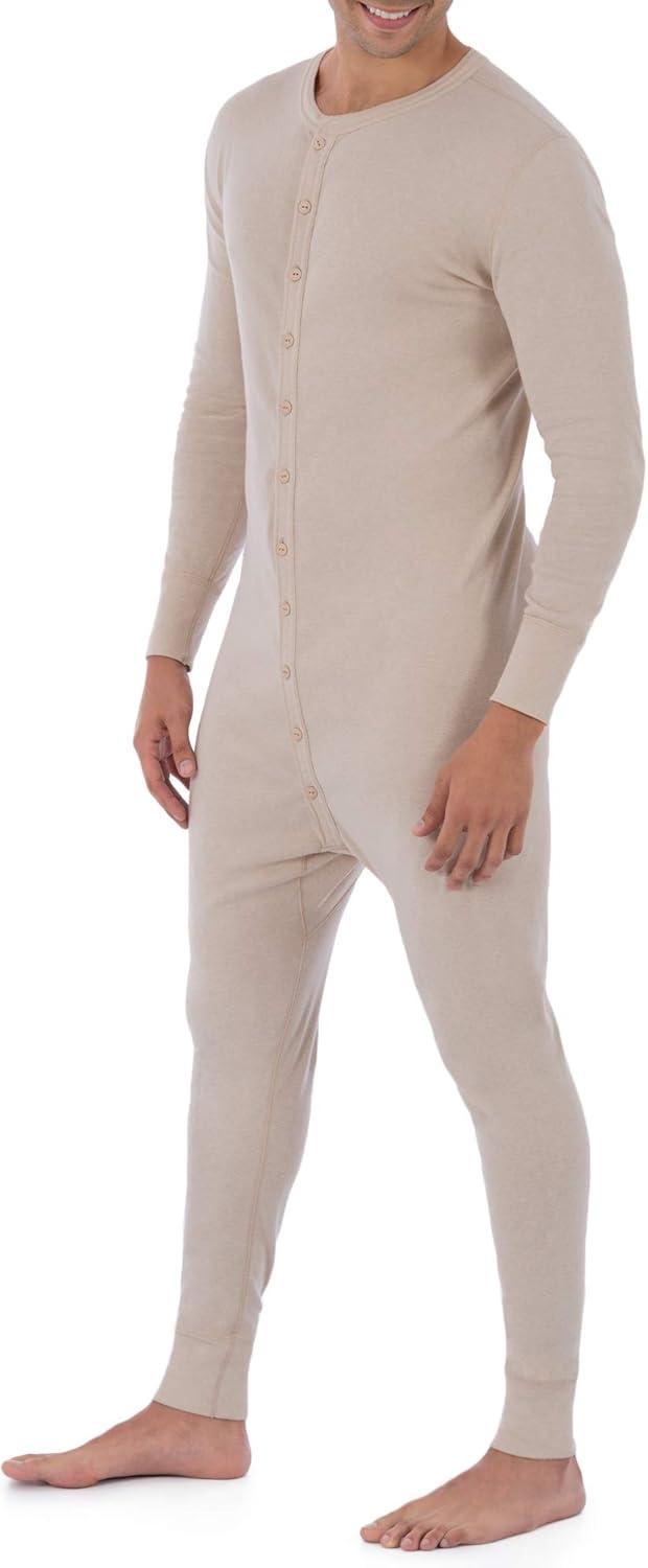 When you’re looking for a thermal underwear that is practical, warm, and provides utmost comfort, look no further than this Fruit of the Loom Premium Men’s Thermal Union Suit. This full-body thermal offers a one-piece solution that provides a bulk-free fitted style perfect for layering and built for lasting protection, warmth, and comfort in cold conditions, day or night. Made from soft cotton and recycled polyester rib fabric, it stretches for a better fit, which won’t restrict your movements, plus the natural breathability of cotton will keep you dry while providing maximum heat retention. A full-length button closure up front makes it a breeze to put on or off, and the button back opening provides practicality when you need it. Rib cuffs at the wrists and ankles ensure heat stays trapped as much as possible, and the tag-free neck label plus flat seams prevent chafing and enhance overall comfort. If you prefer the convenience of a one-piece thermal, this Fruit of the Loom Premium Men’s Thermal Union Suit is a must-have in your wardrobe.