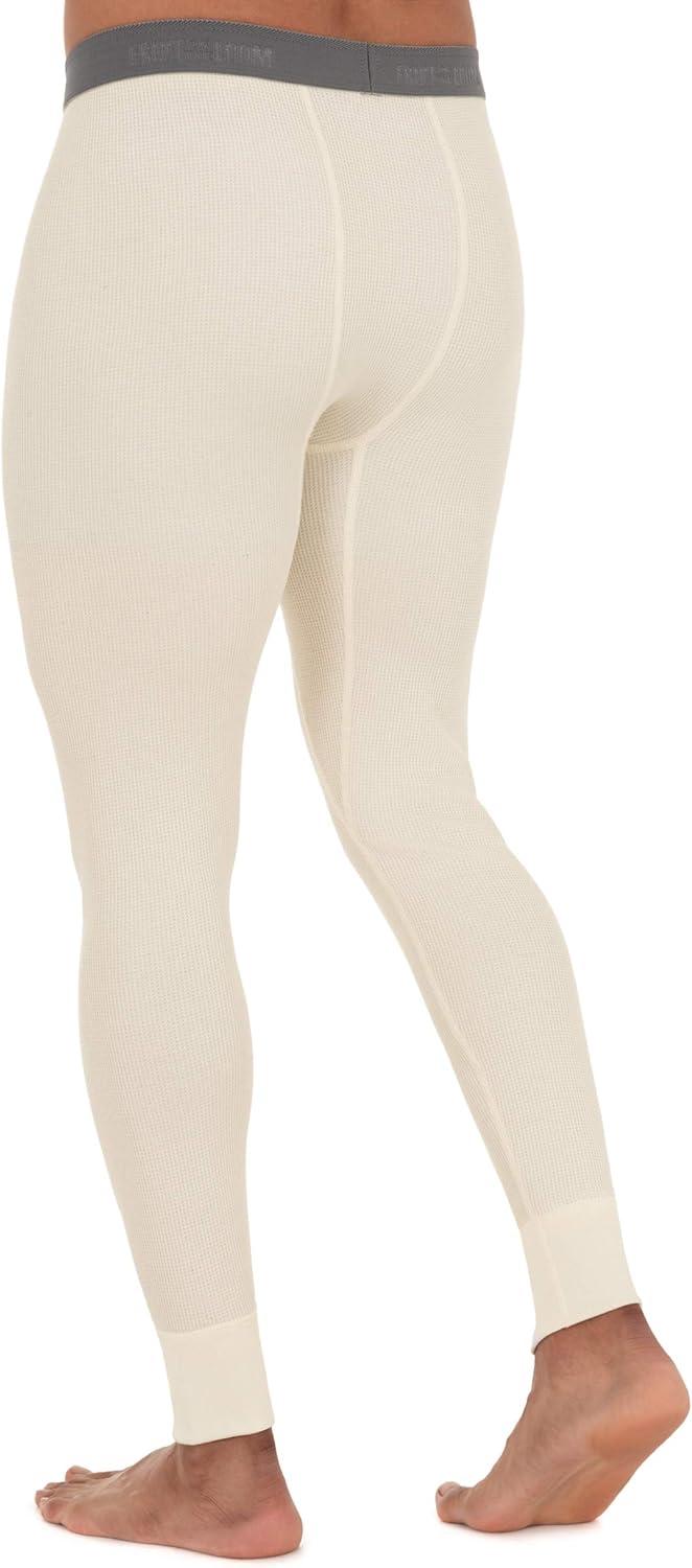 Fruit of the Loom Mens Recycled Premium Waffle Thermal Underwear Long Johns Bottom (1, 2, 3, and 4 Packs)(Natural)