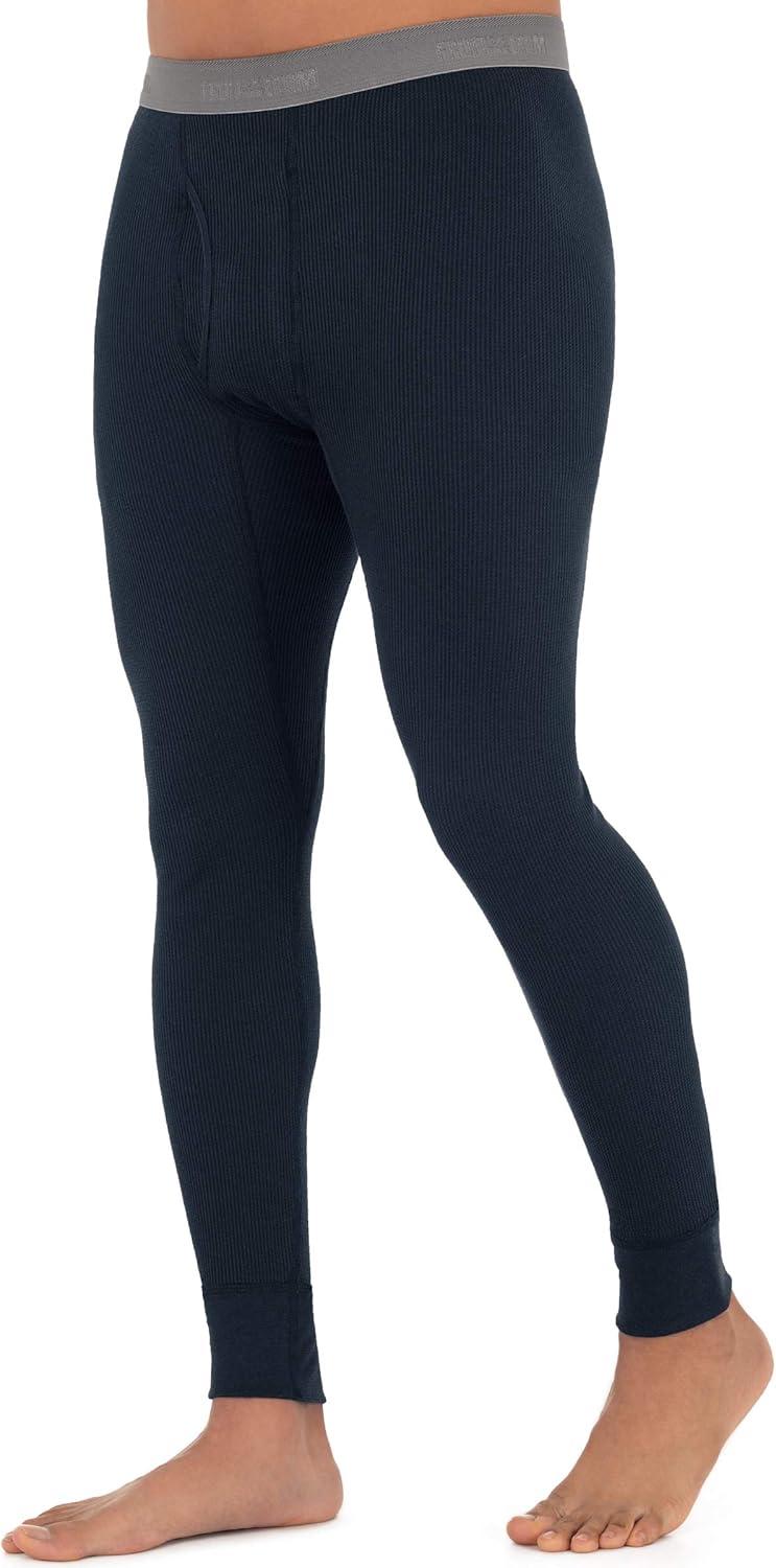 Fruit of the Loom Mens Recycled Premium Waffle Thermal Underwear Long Johns Bottom (1, 2, 3, and 4 Packs)(Navy)