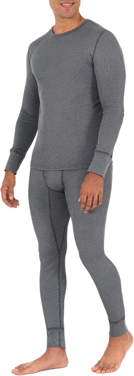 Fruit of the Loom Men’s Recycled Waffle Thermal Underwear Crew Top (1 and 2 Packs)(Greystone Heather)