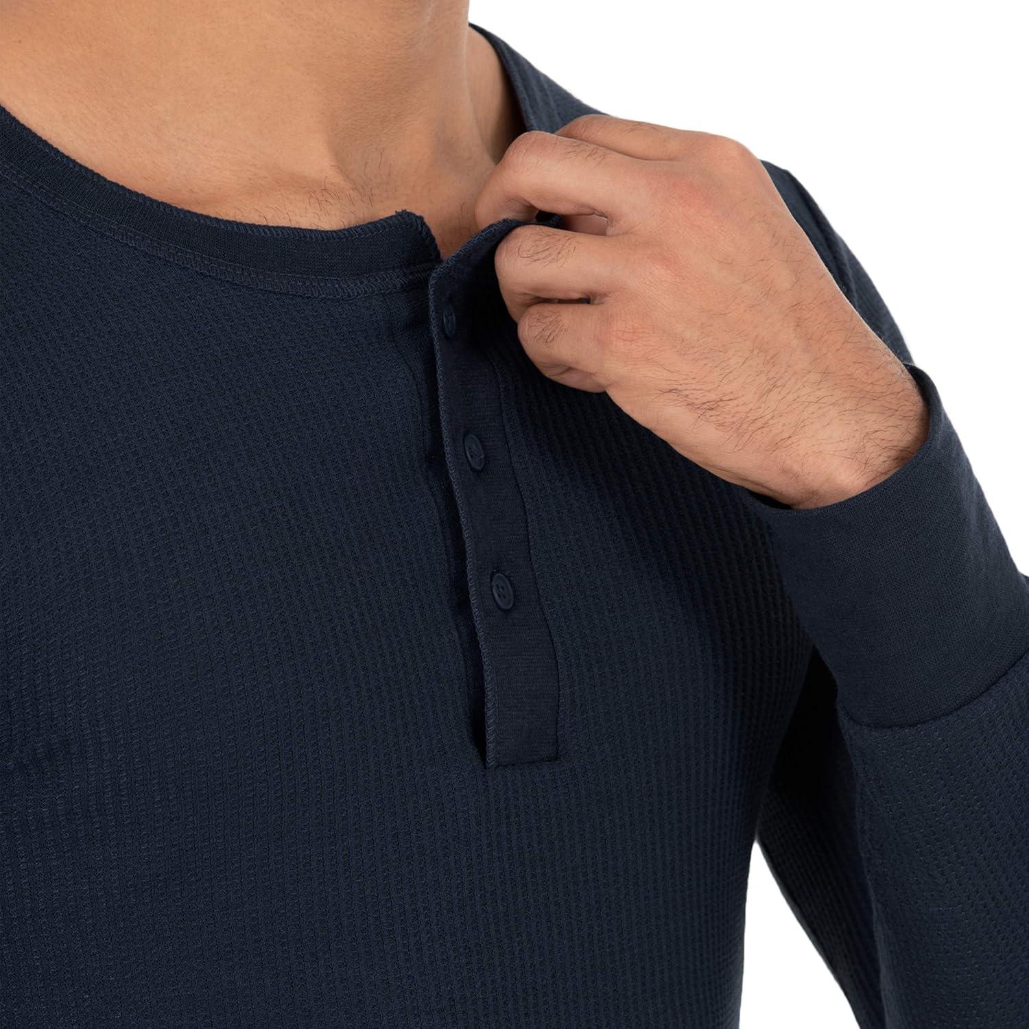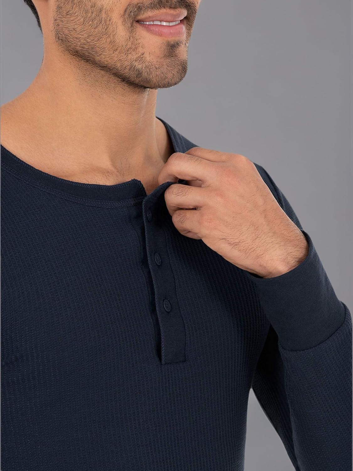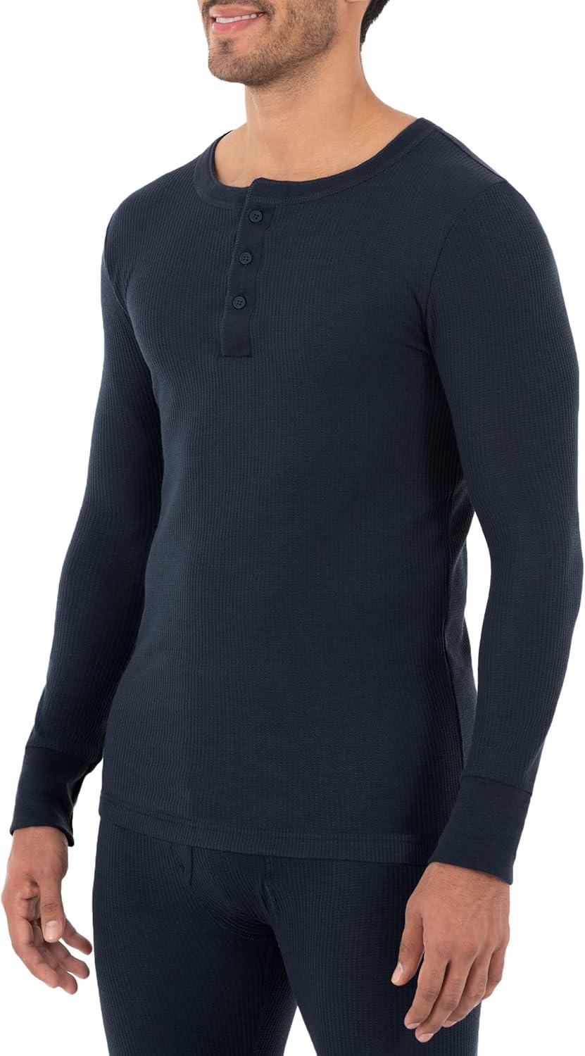 Fruit of the Loom Mens Recycled Waffle Thermal Underwear Henley Top (1 and 2 Packs)(Navy)
