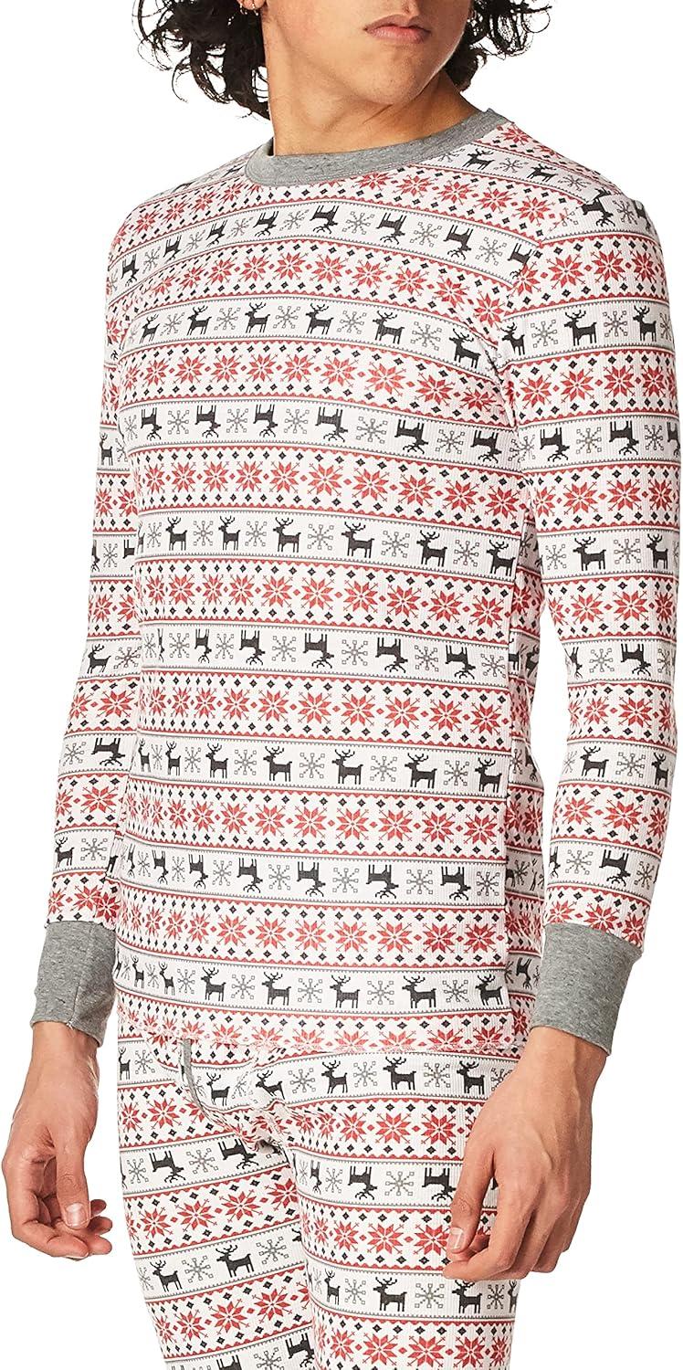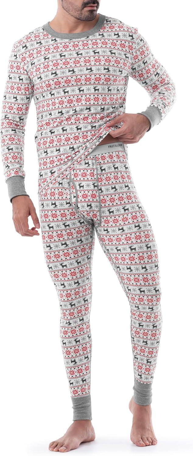 Fruit of the Loom mens Recycled Waffle Thermal Underwear Set (Top and Bottom)(Fair Isle White)