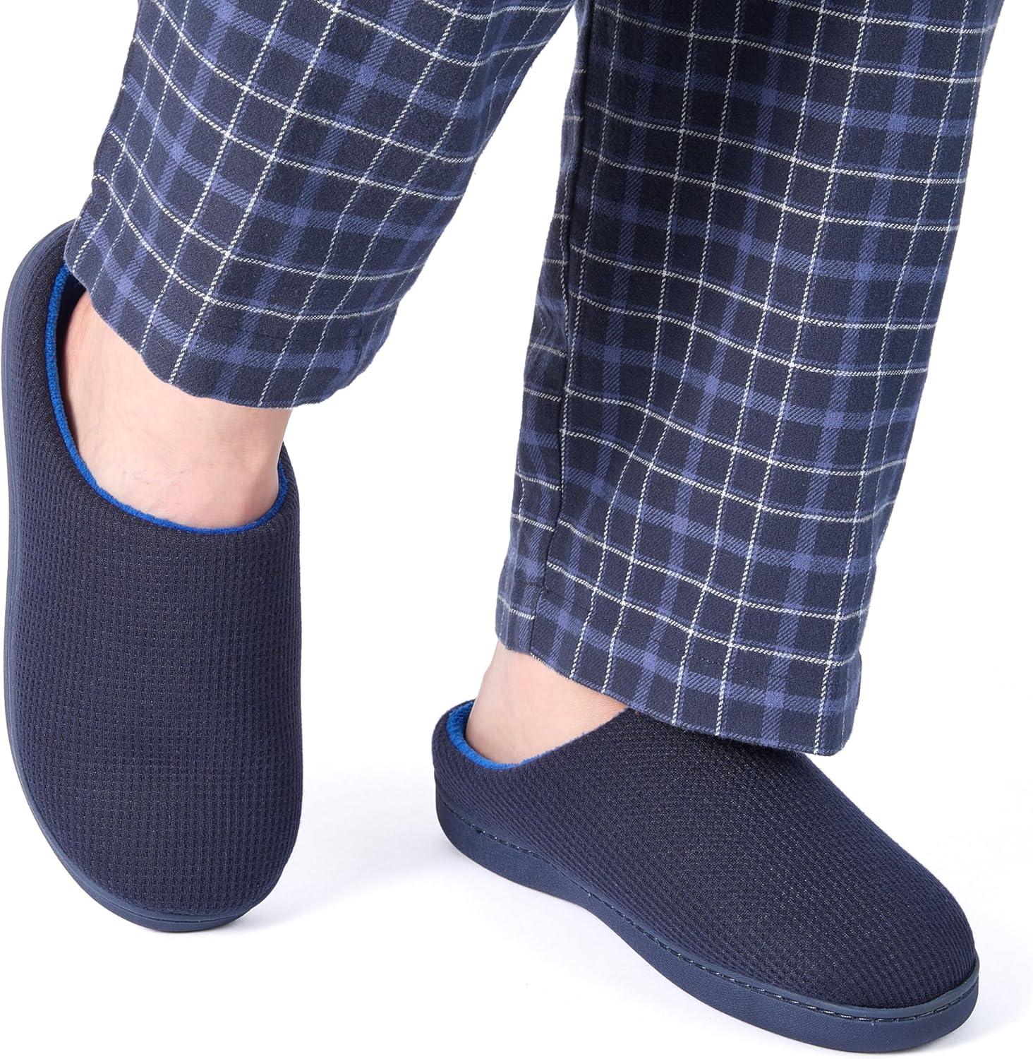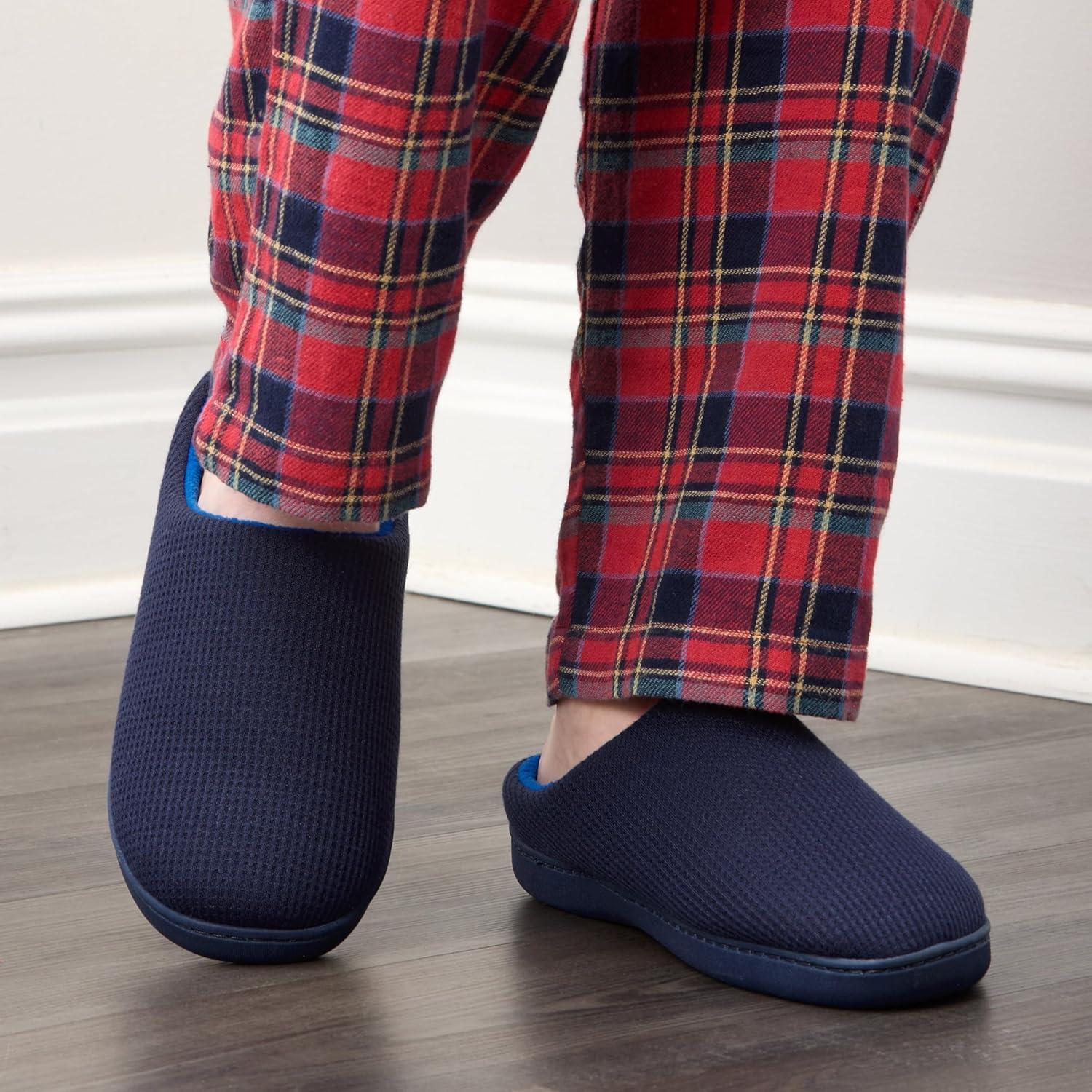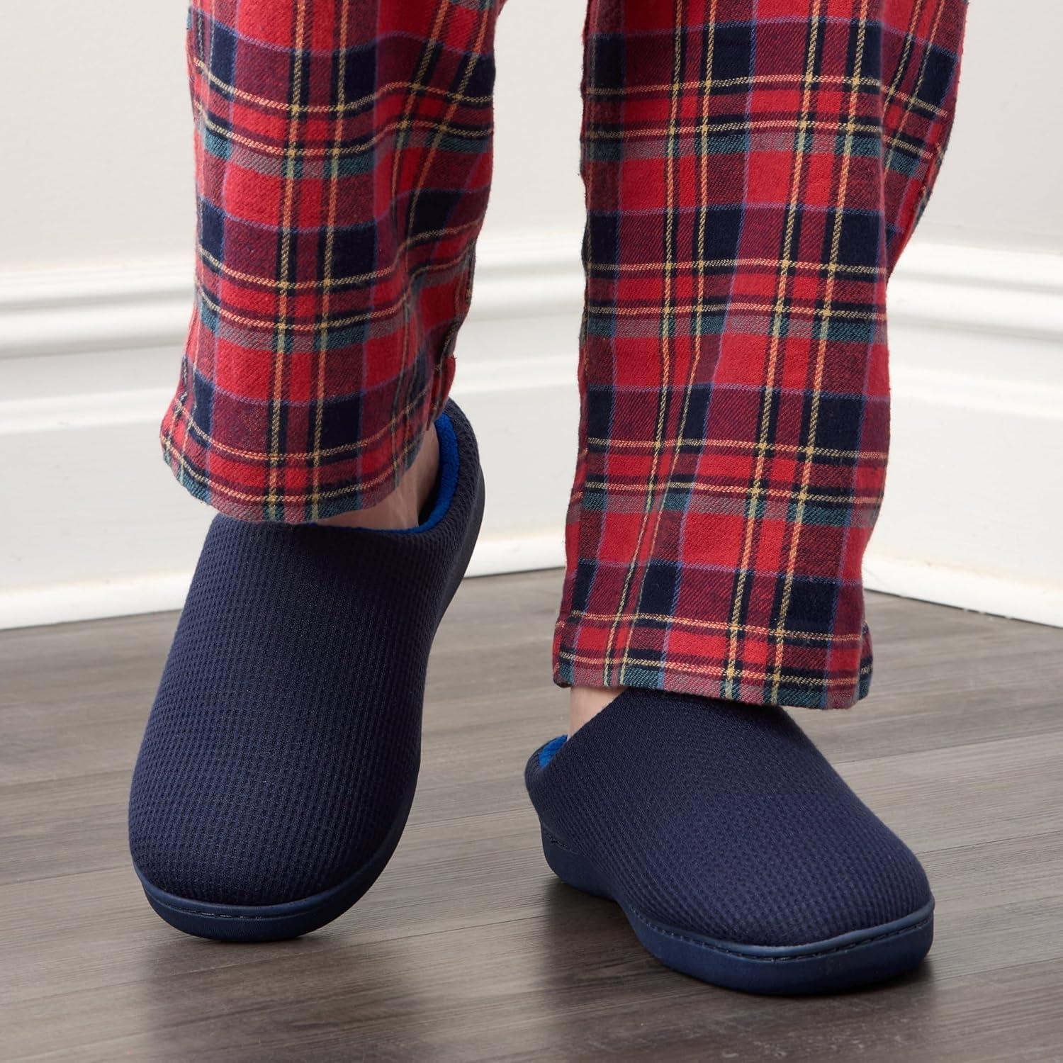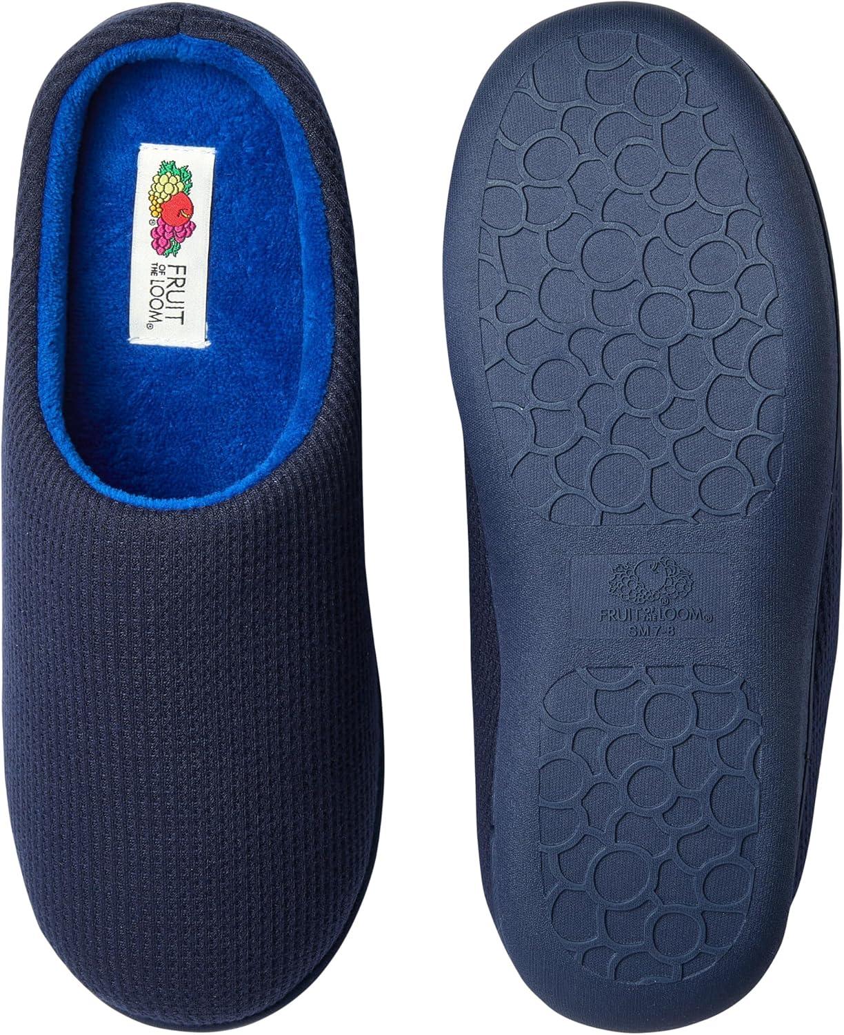 Fruit of the Loom Men’s Ribbed Jersey Clog Slippers – Memory Foam Sole – Indoor/Outdoor, Pantuflas Machine Washable(Navy)