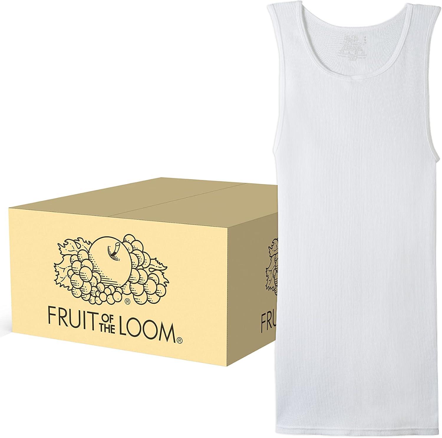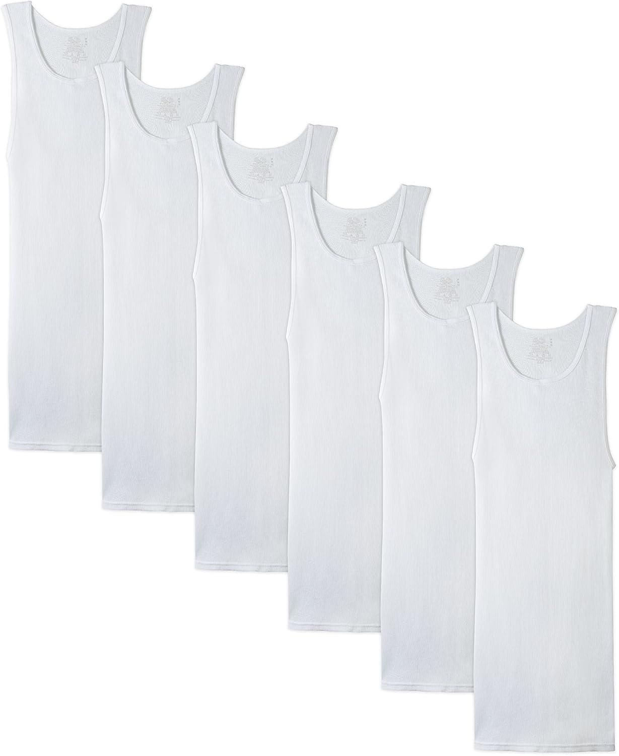 Fruit of the Loom Men's Classic White Tanks are comfortable and versatile as an every day undershirt. They are made with super-soft, 100% cotton ribbed fabric, providing a cool and comfortable fit that forms to your shape. These a-shirts have generous length that stay tucked in all day and keep you comfortable in every situation. These sleeveless undershirts are comfortable and light enough to be worn as an extra layer without adding extra warmth to an outfit. Each undershirt wicks away moisture so you can stay cool and dry.